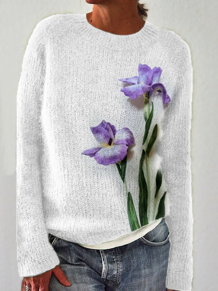 Classy Purple Irises Felt Art Cozy Alzheimer's Knit Sweater