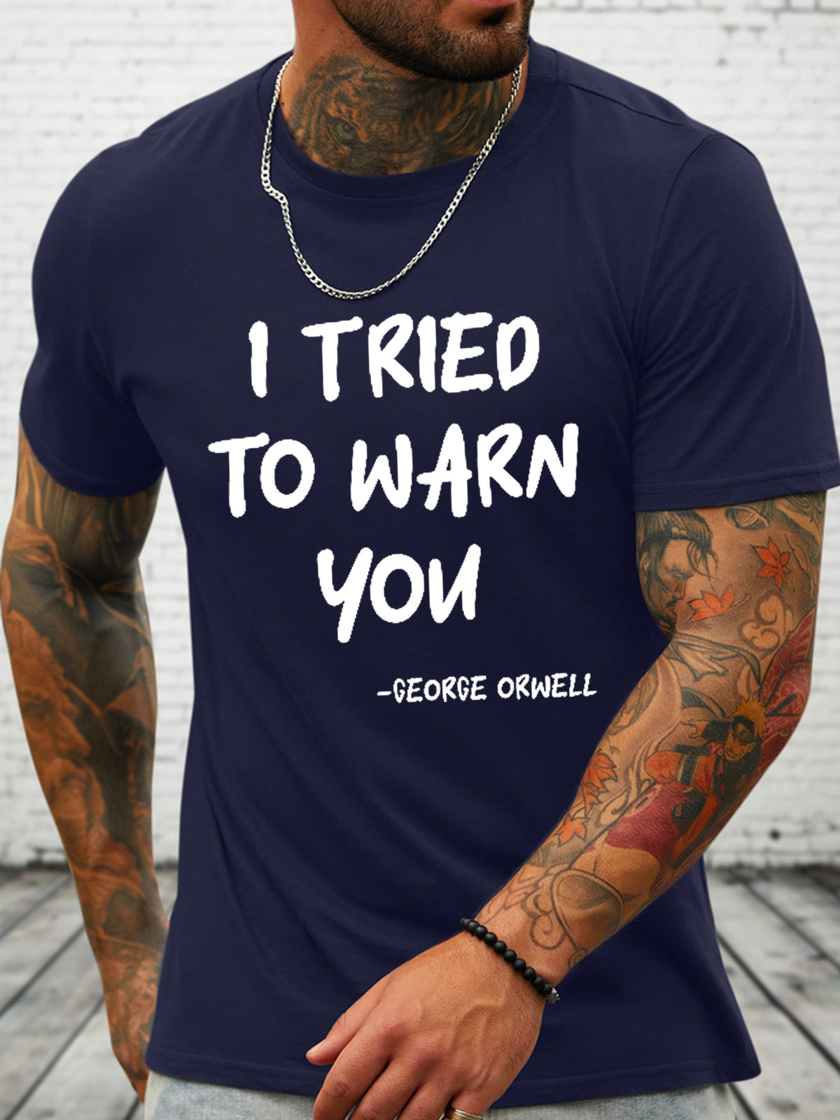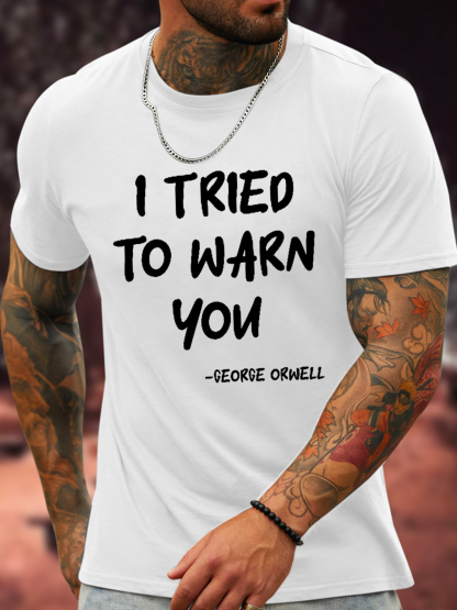 Cotton I Tried To Warn You Orwell Crew Neck Text Letters Casual T-Shirt