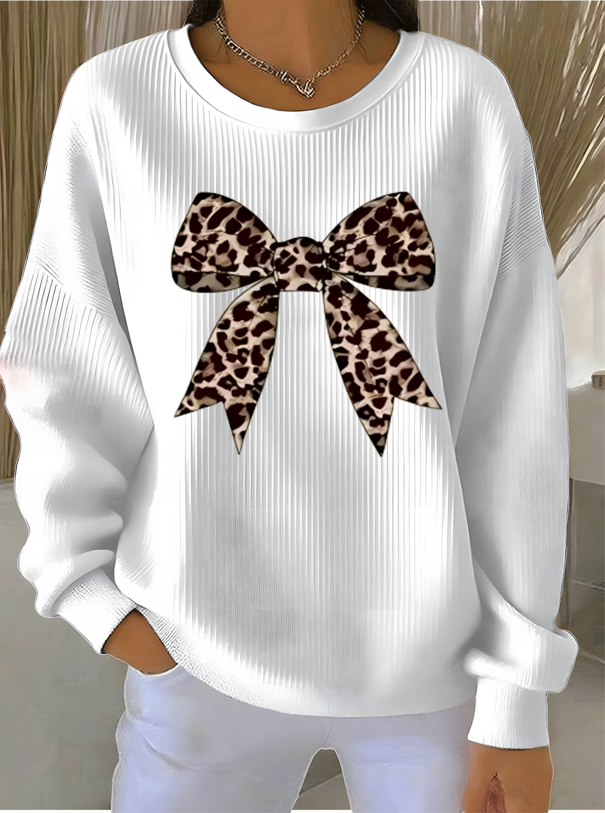 Crew Neck Loose Cotton-Blend Casual Sweatshirt