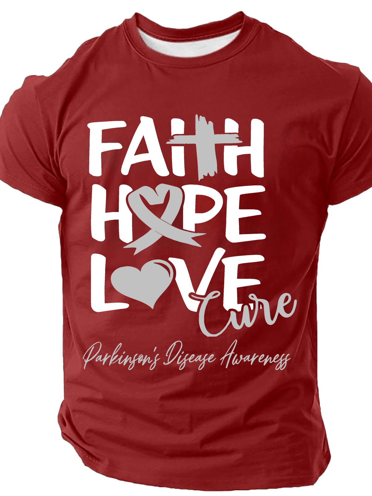 Faith Hope Love Cure Parkinson's Disease Awareness Cotton T-shirt