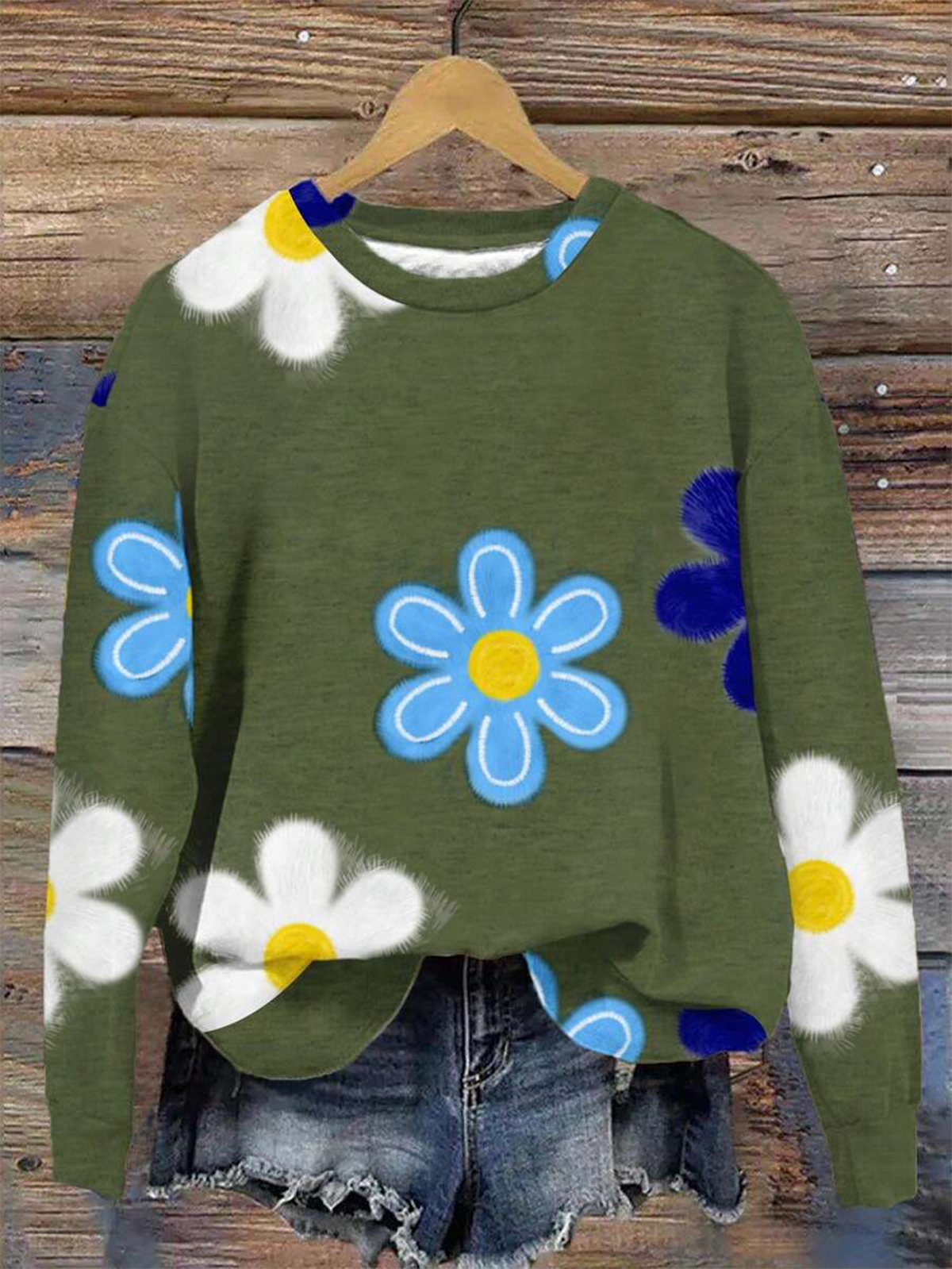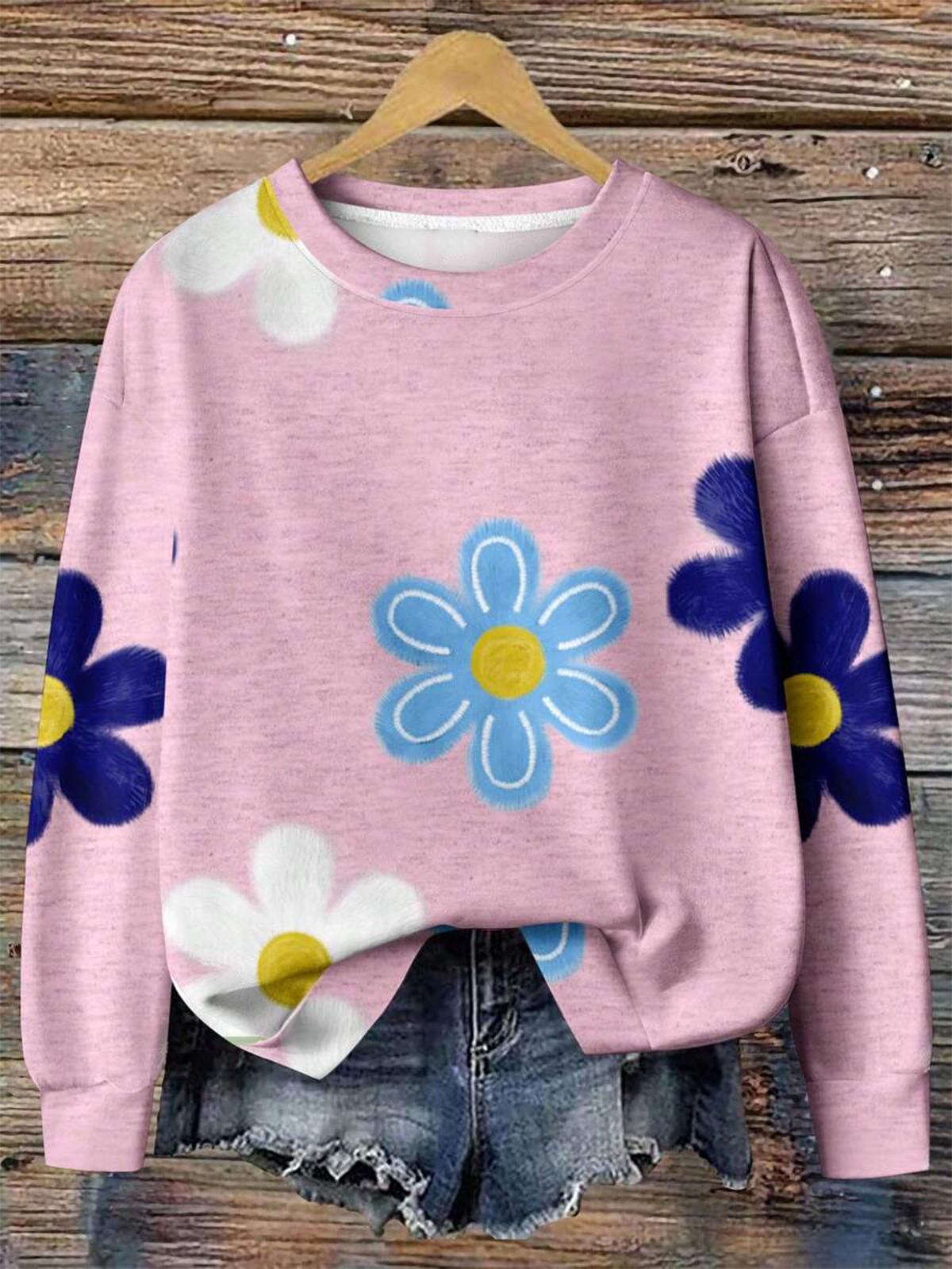 Floral Vintage Cotton-Blend Crew Neck Sweatshirt