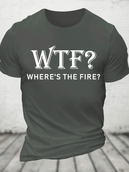 Funny Firefighter WTF Where's The Fire Cotton T-Shirt