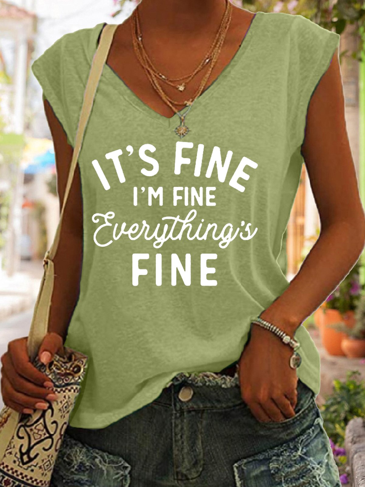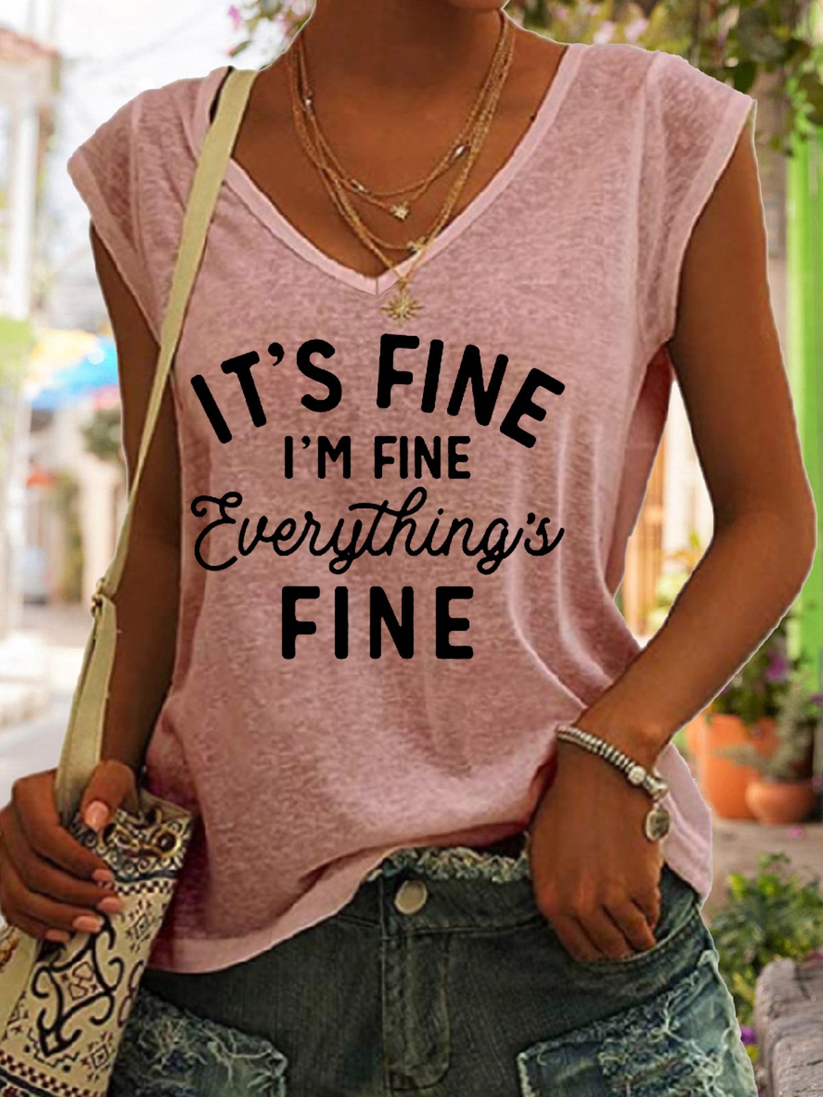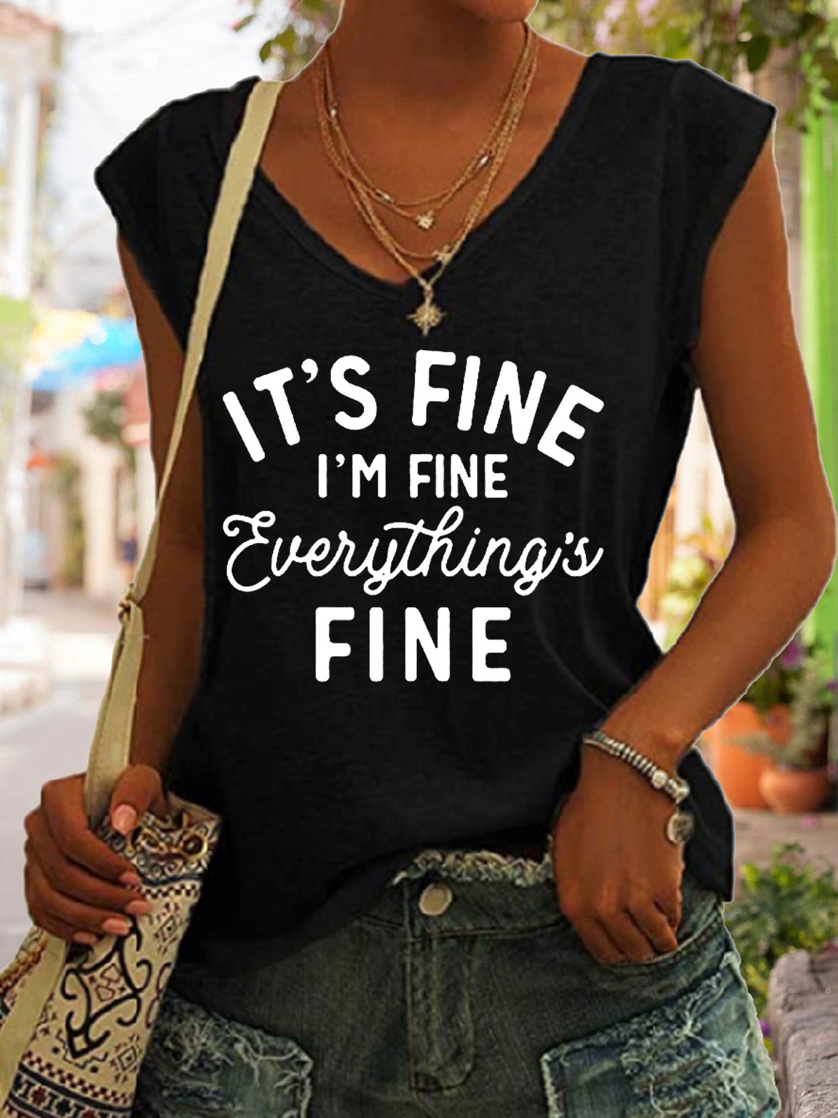 Funny Its Fine Im Fine Everythings Fine Letter Knit Tank