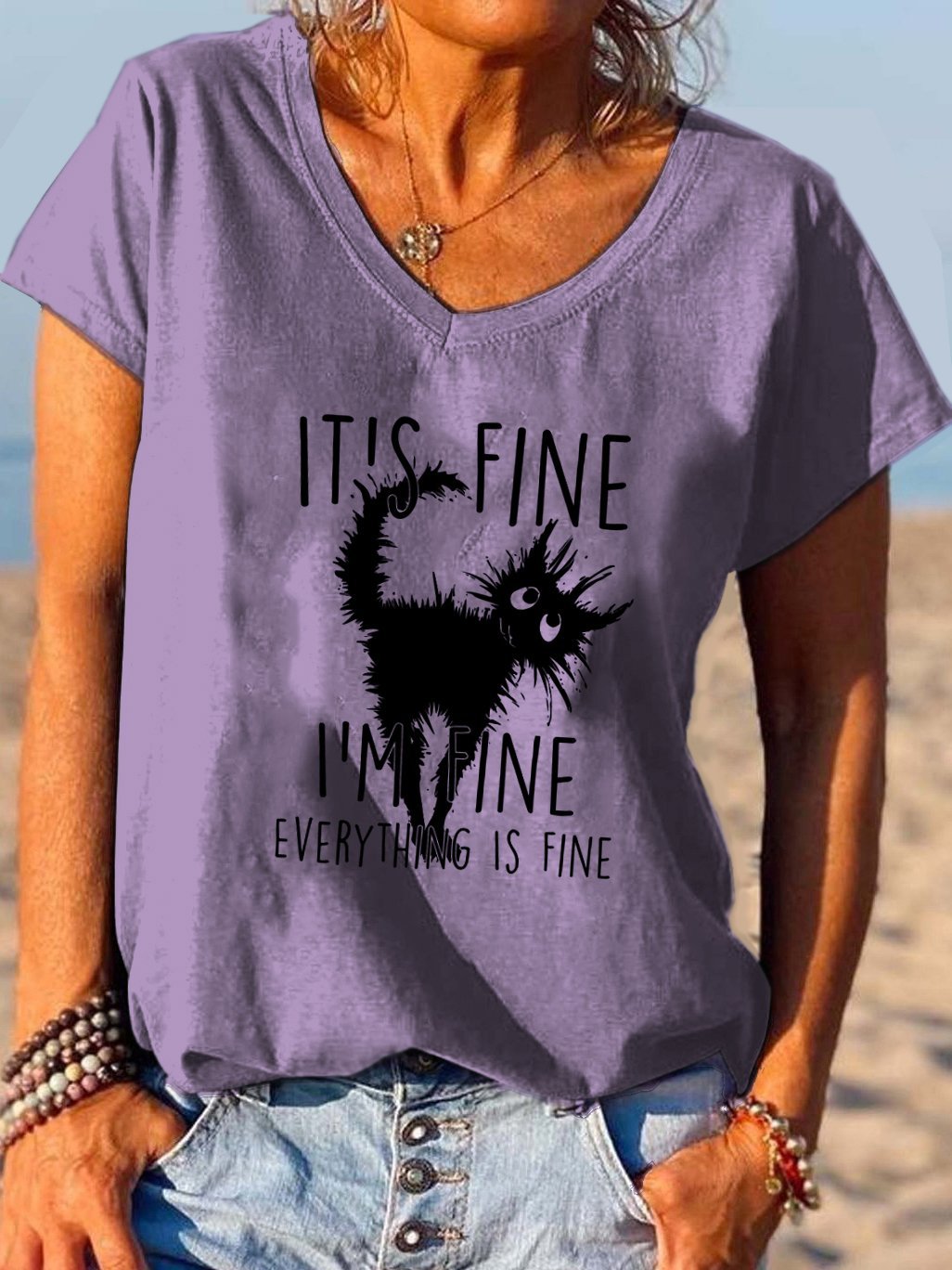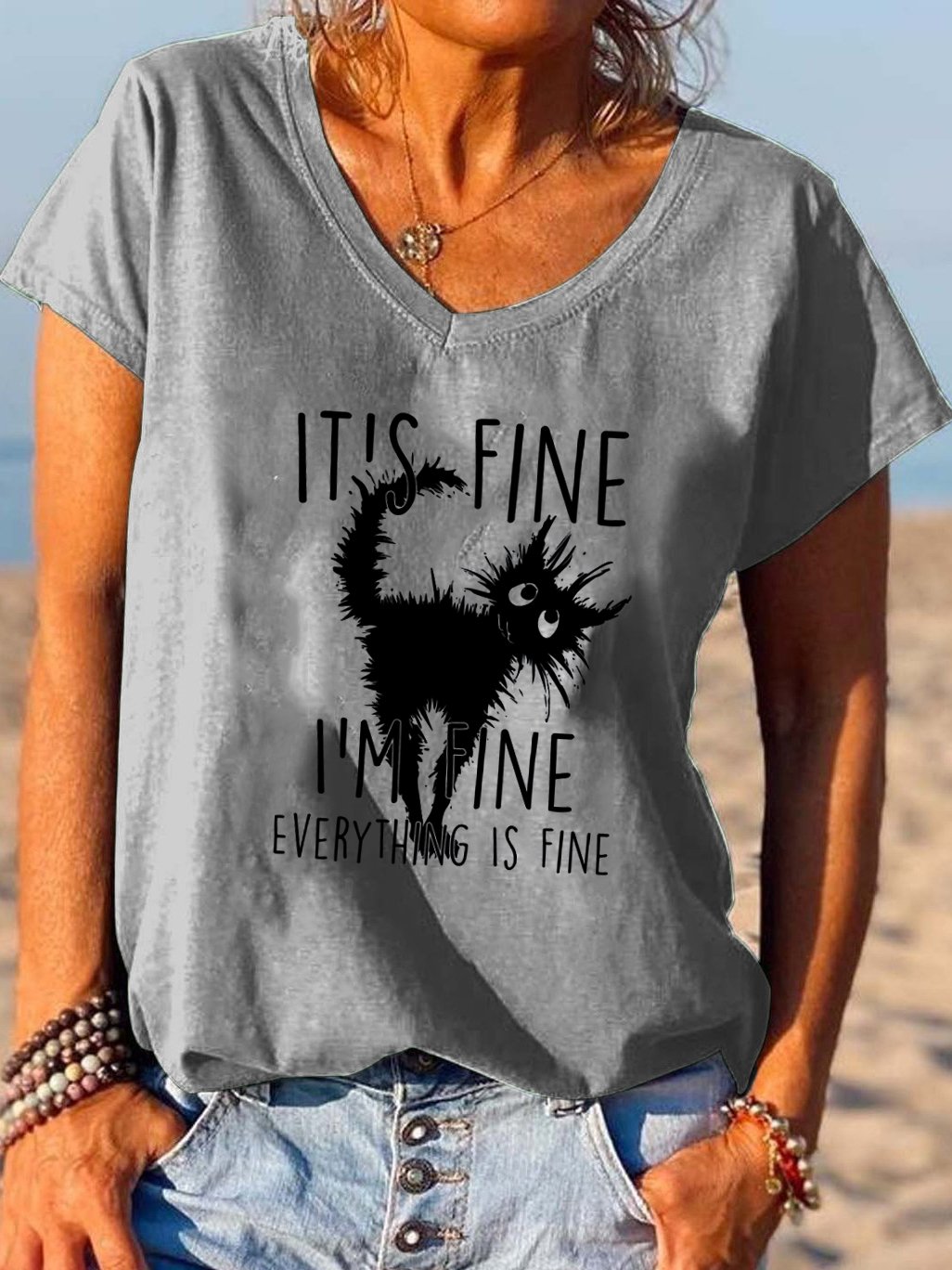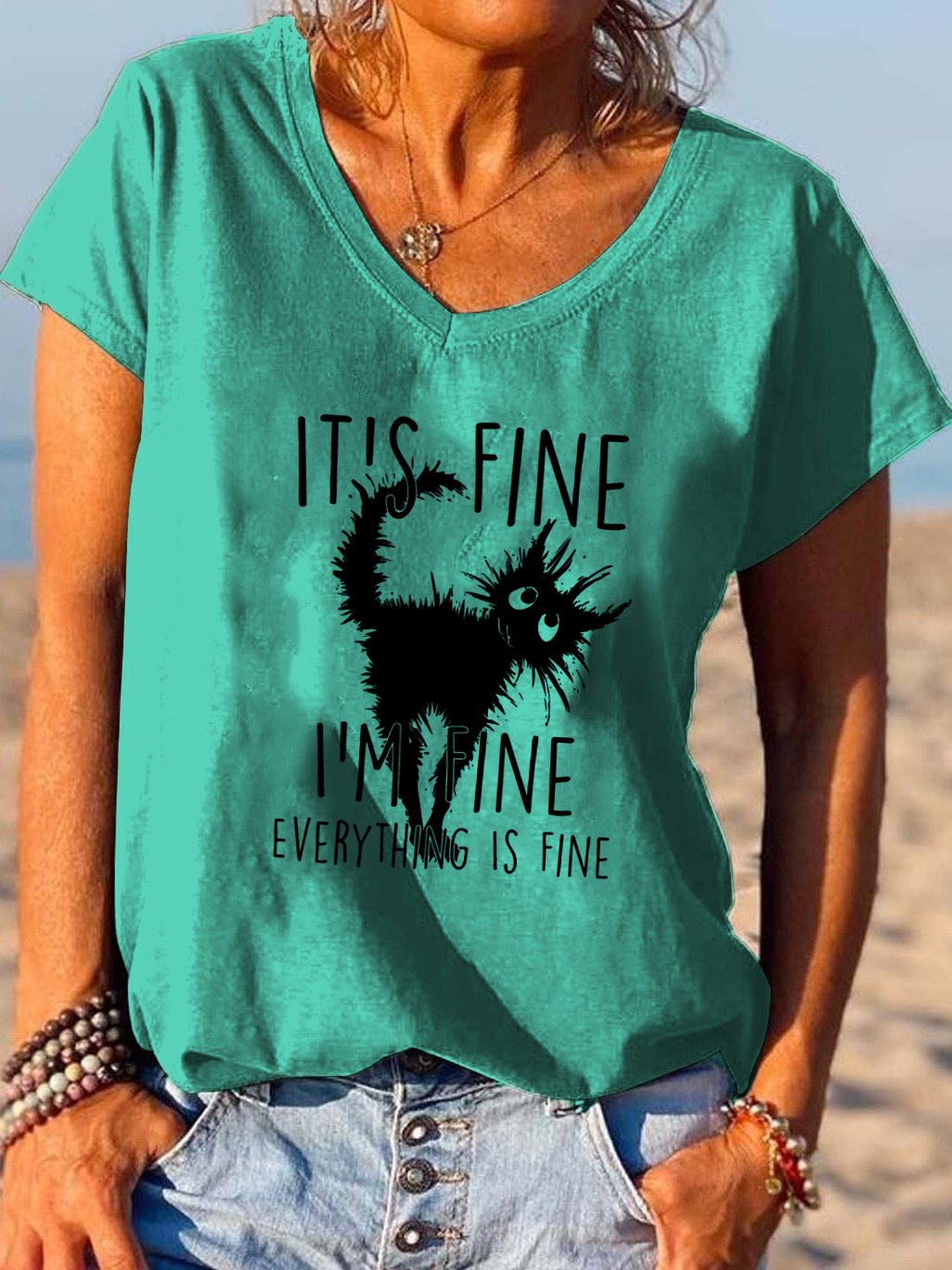It's Fine I'm Fine Everthing Is Fine Cat Print T-shirt