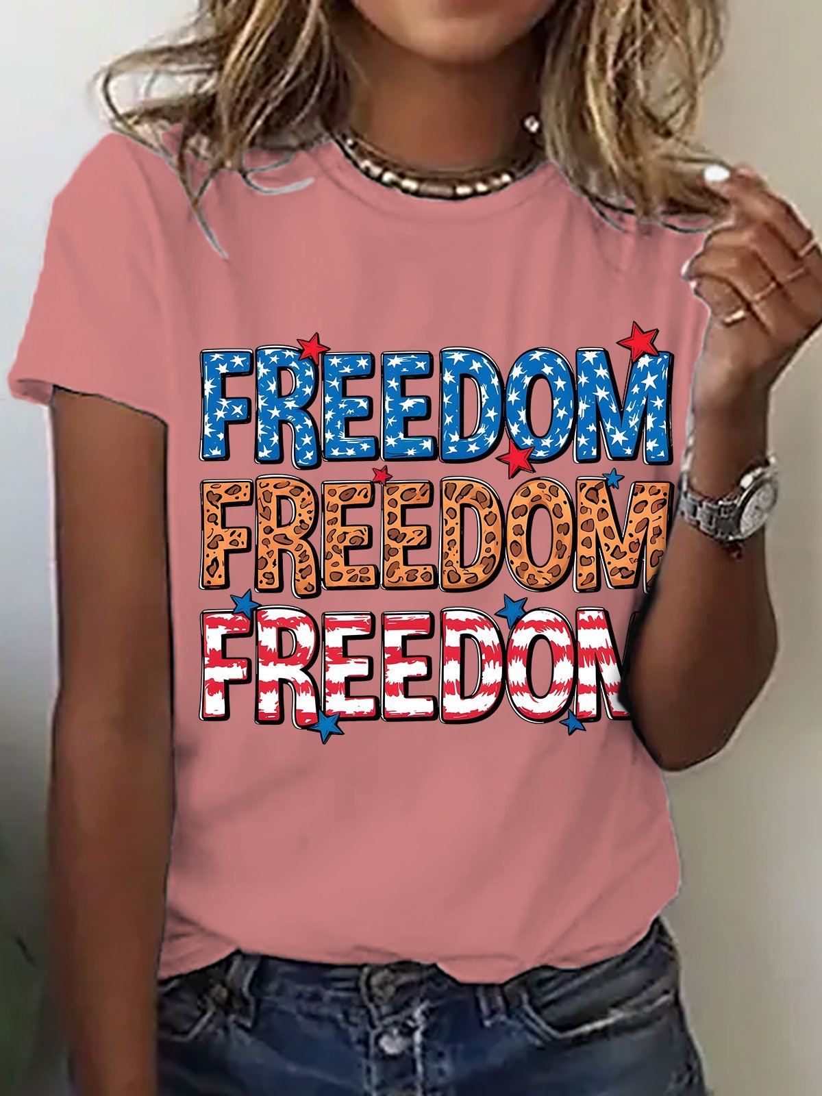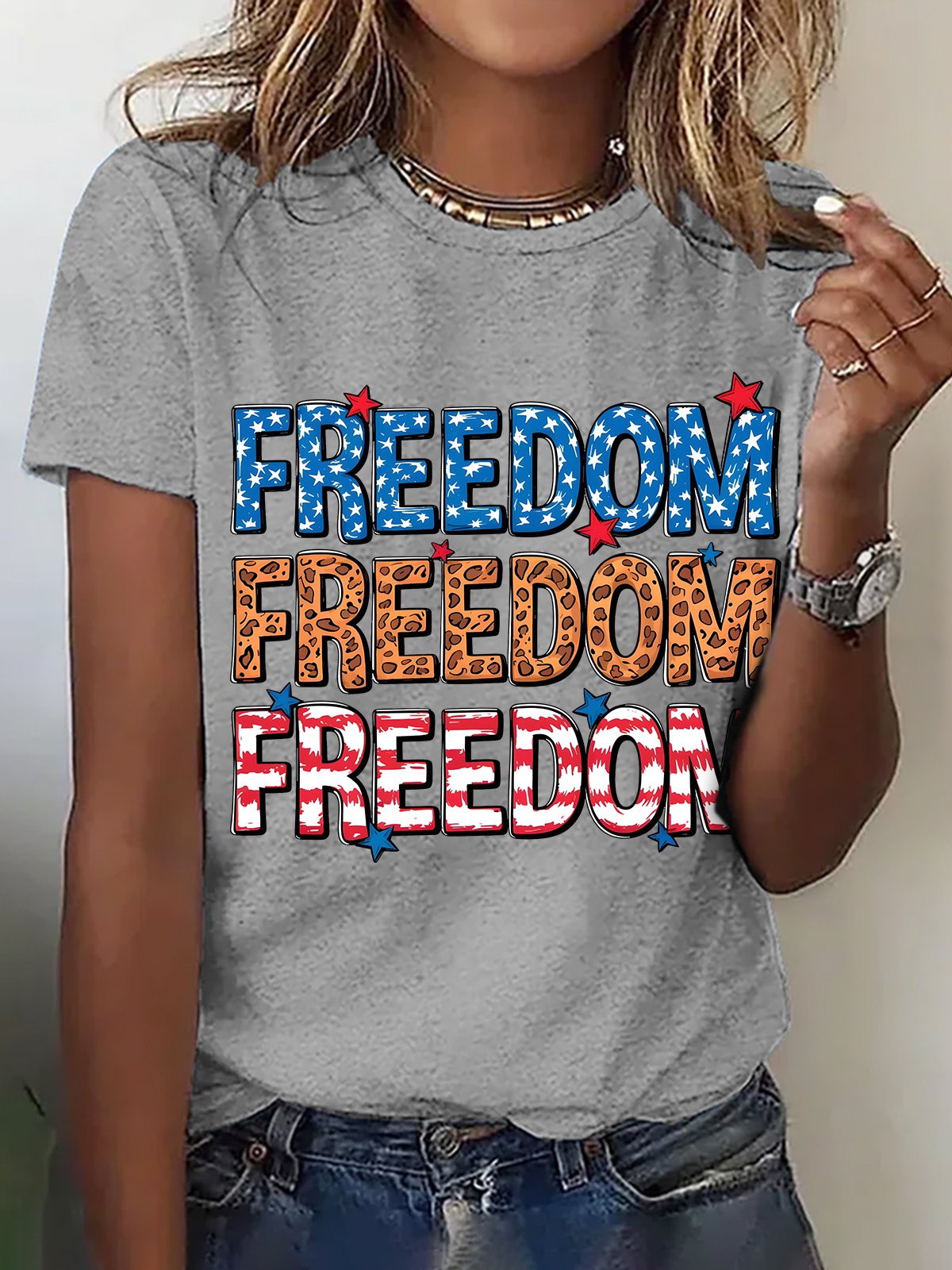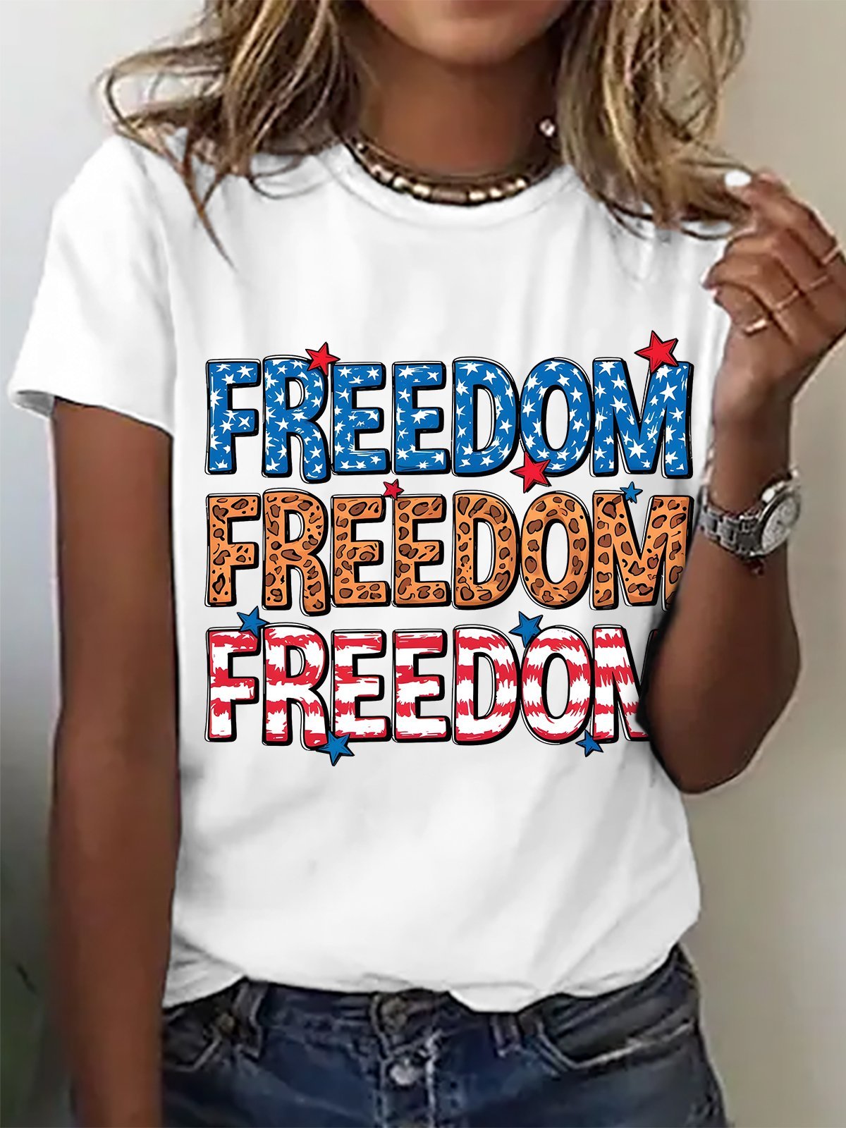 Leopard Print Freedom American Flag Cotton T-shirt