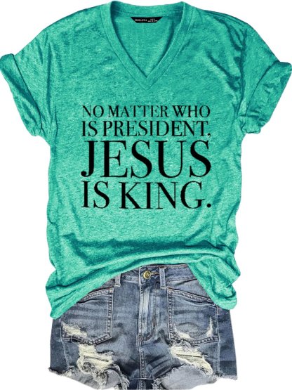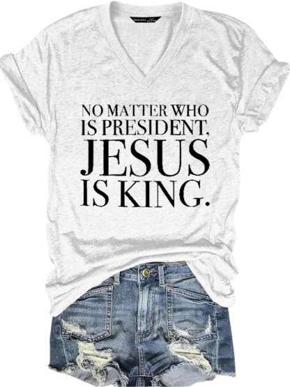 No Matter Who Is President Jesus Is King Casual Short Sleeve T-Shirt