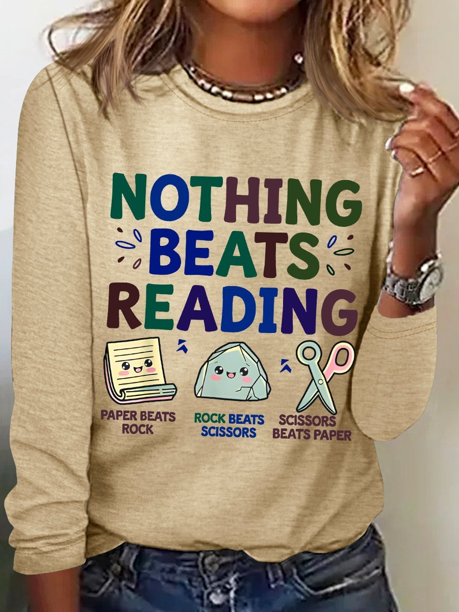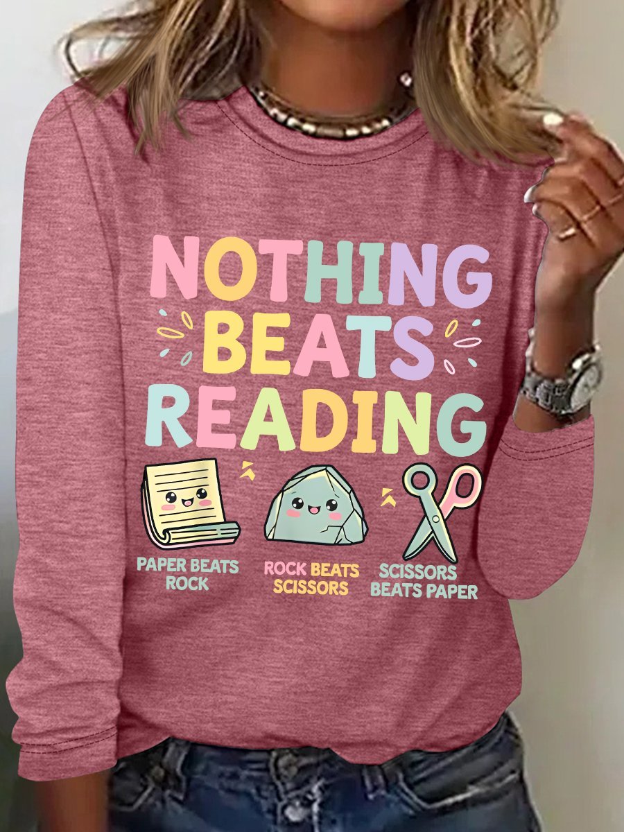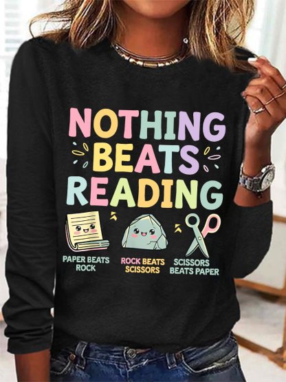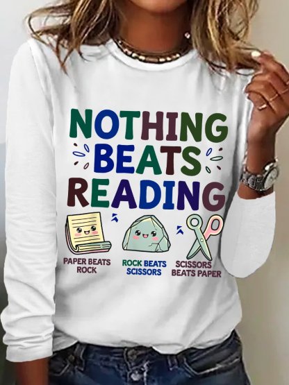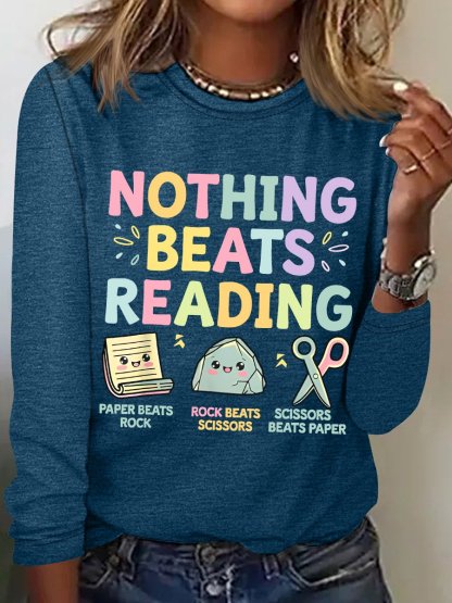 Nothing Beats Reading Librarian Book Bookworm Casual Cotton-Blend Blouse