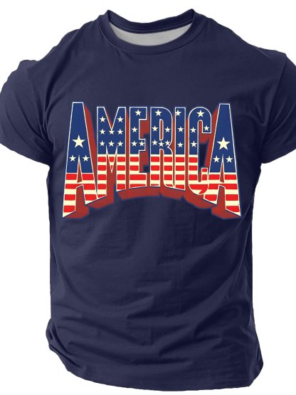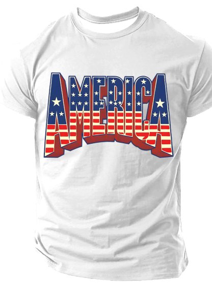 Retro 3D American Flag Cotton T-shirt