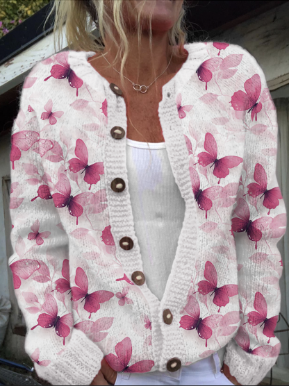 Simple Crew Neck Knitted Maple Leaf Sweater