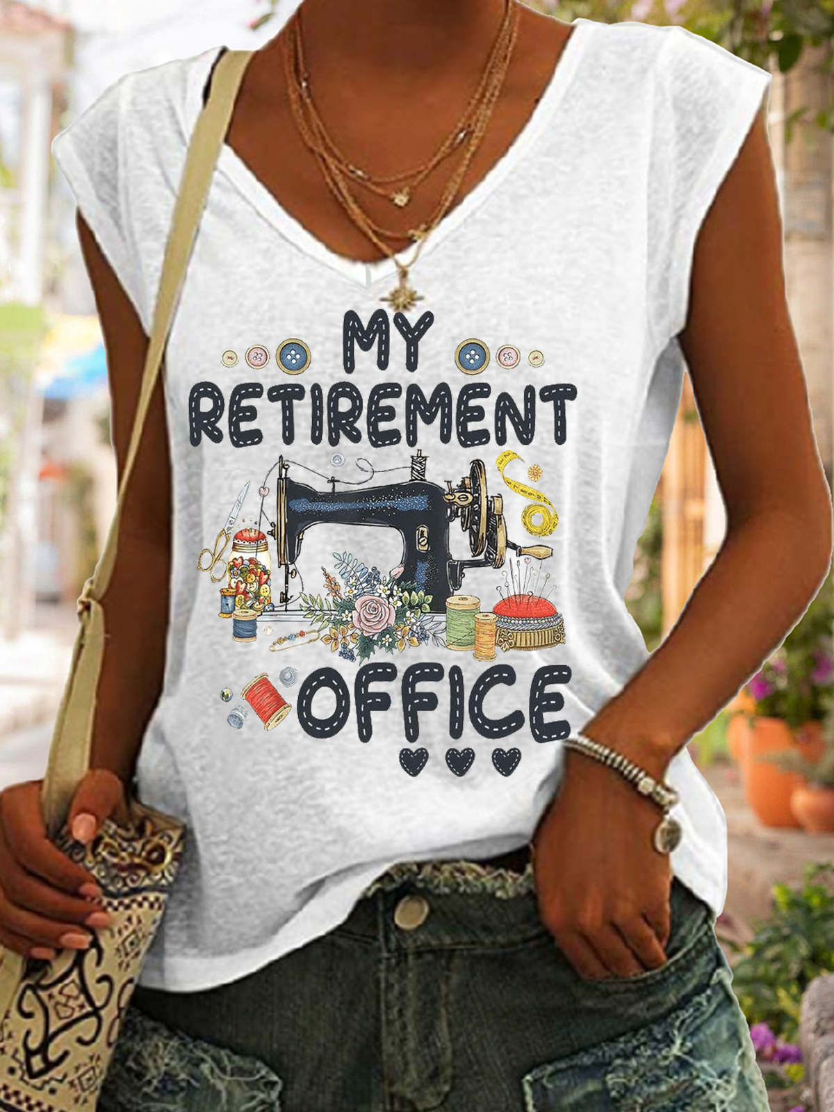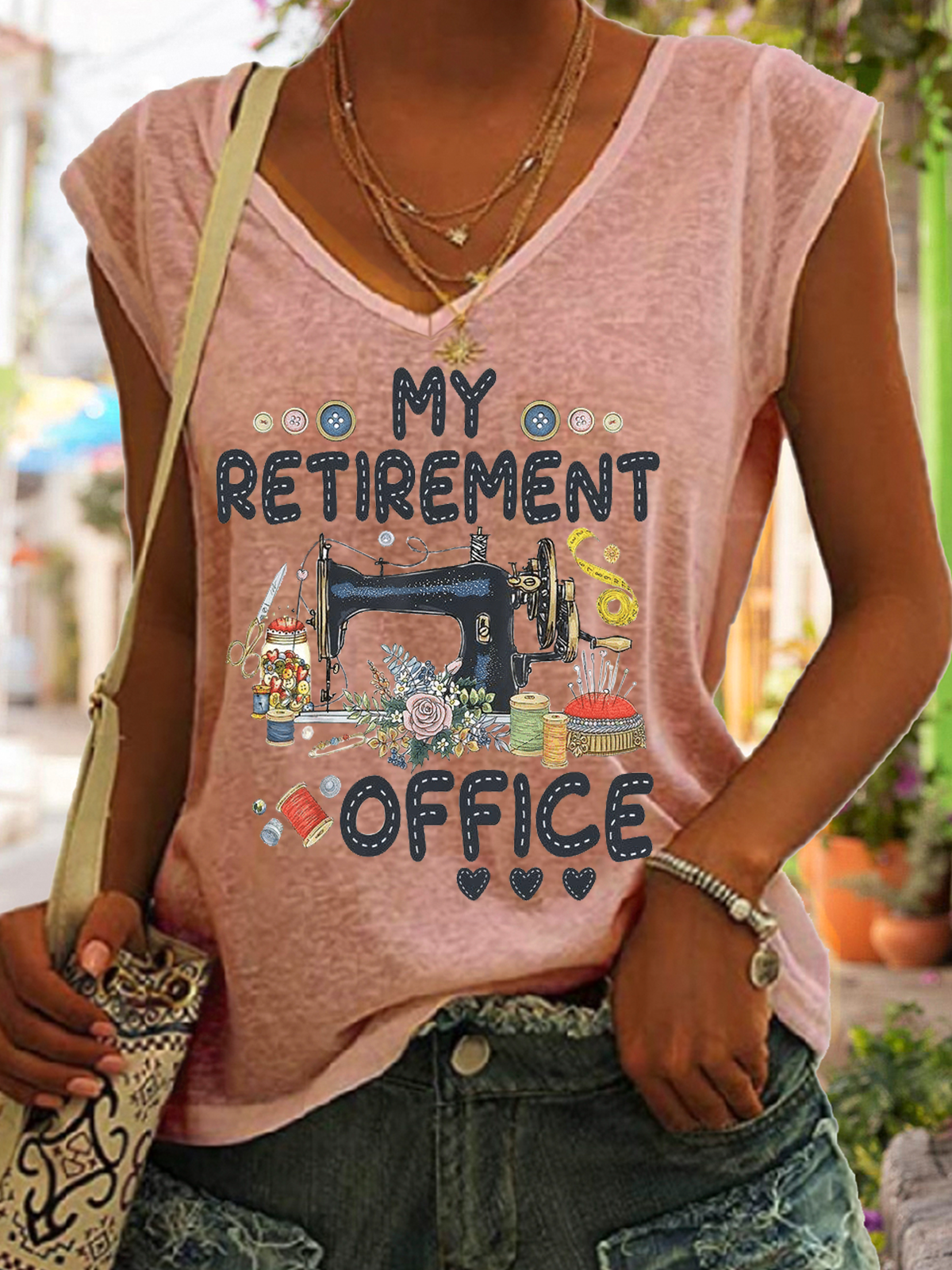 Women's Funny Word Sewing My Retirement Office V Neck Tank Top