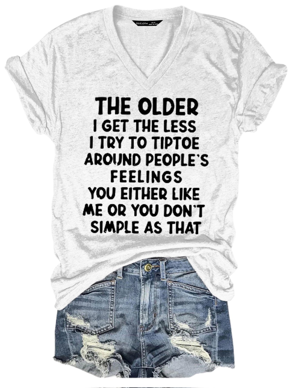 The Older I Get The Less I Try To Tiptoe Around People's Feelings V Neck Letter Short Sleeve T-Shirt