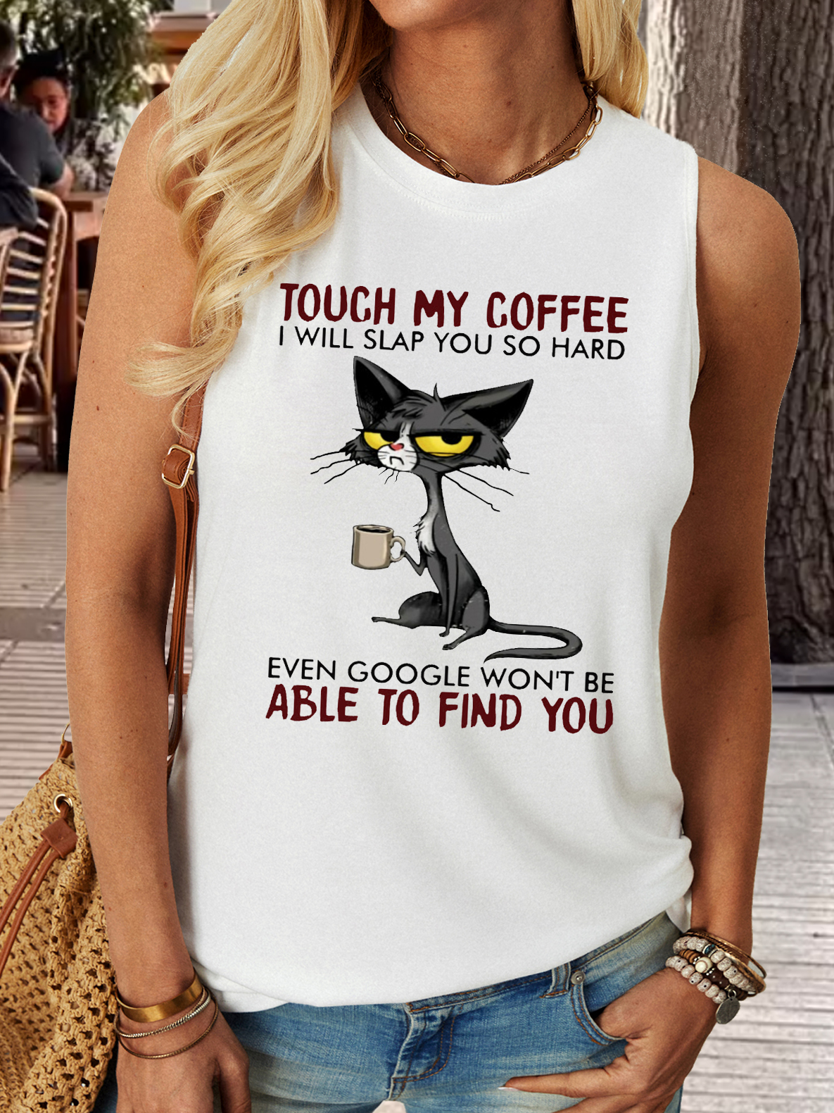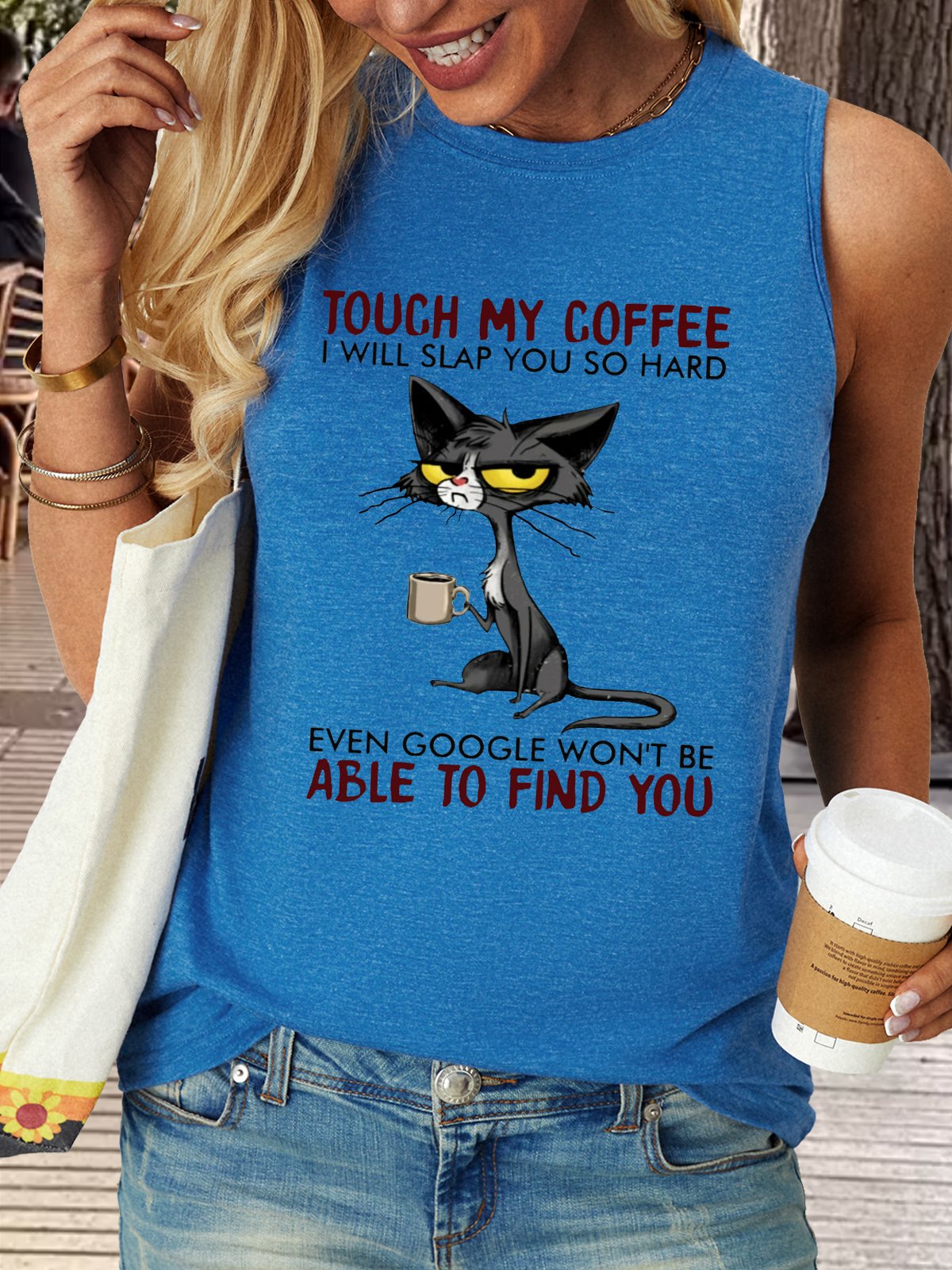 Women's Funny Letter Grumpy Cat Casual Tank Top