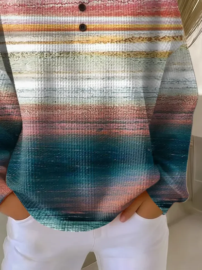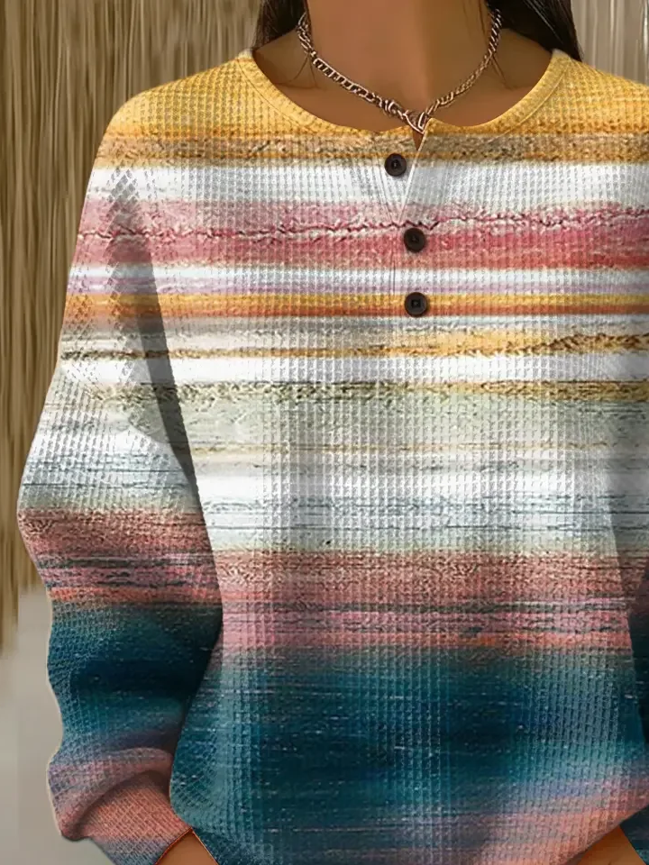 Women's Abstract Print Button-Up Casual Waffle Knit Sweatshirt