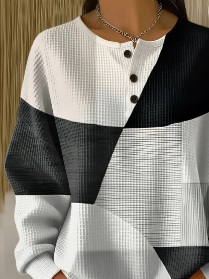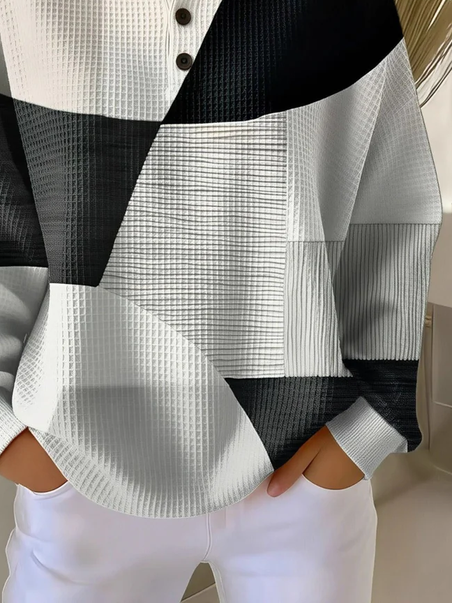 Women's Abstract Print Button-Up Casual Waffle Knit Sweatshirt