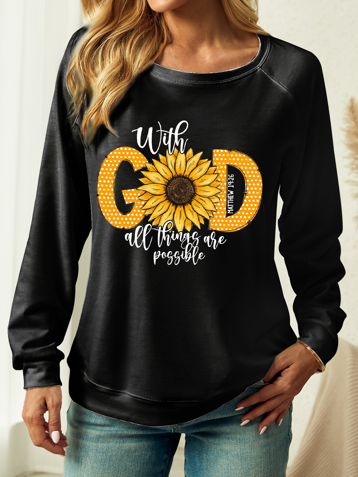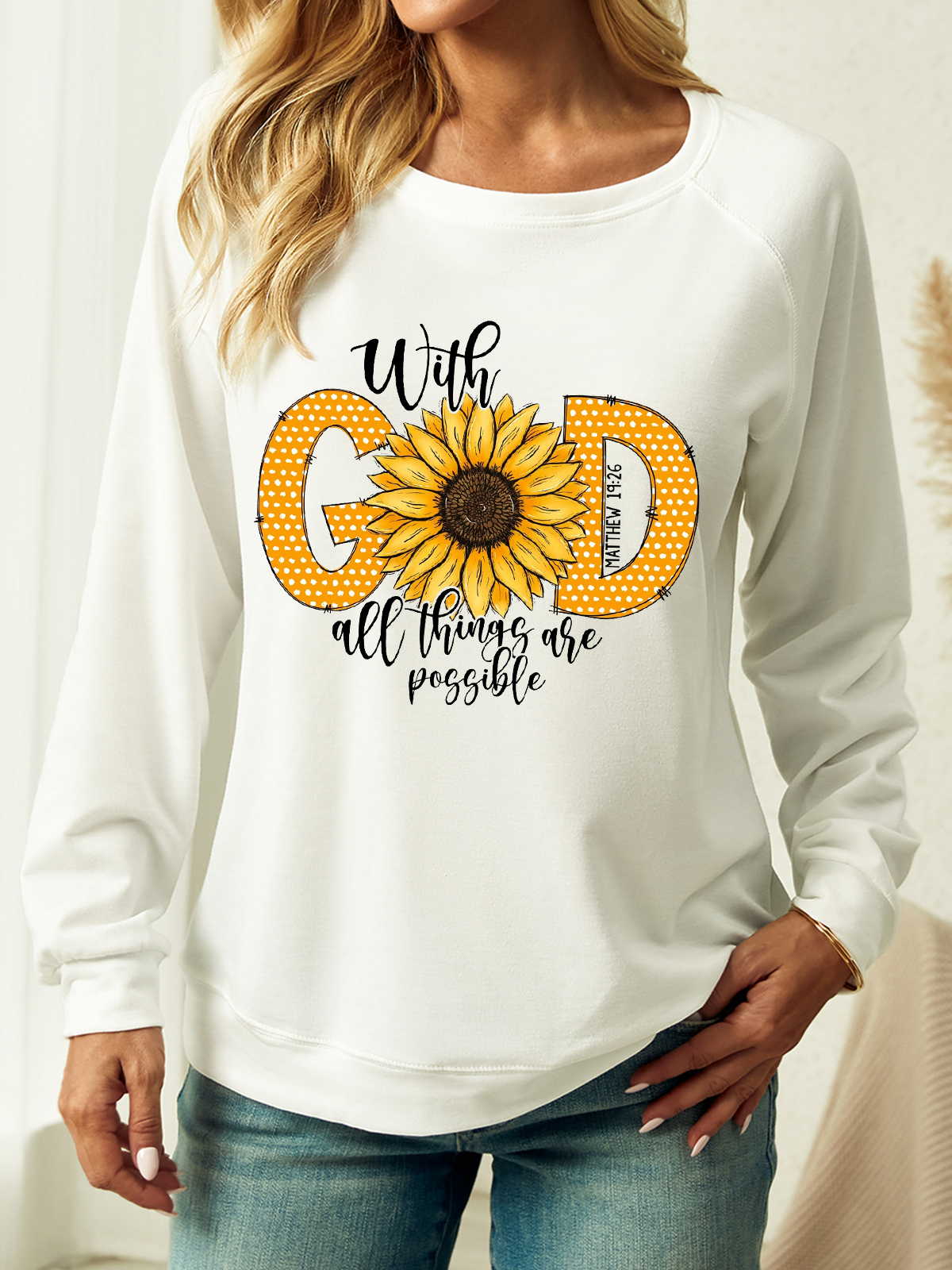 Women's Bible Verse With God All Things Are Possible Crew Neck Sweatshirt