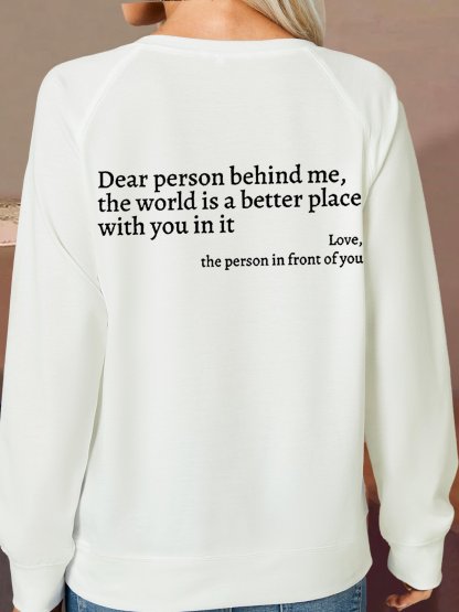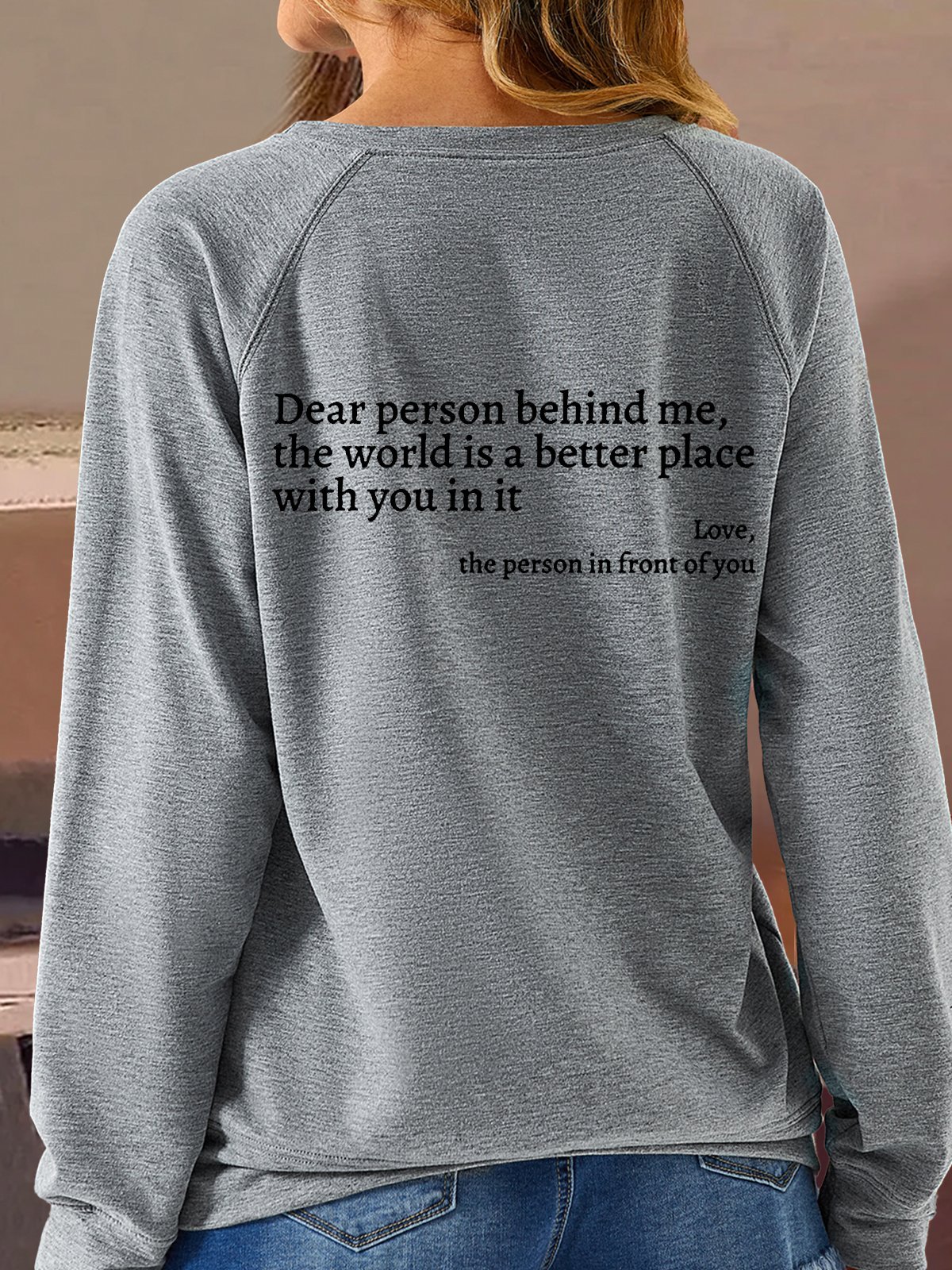 Women's Dear Person Behind Me You Are Enough Love Awareness Peace Casual Crew Neck Sweatshirt