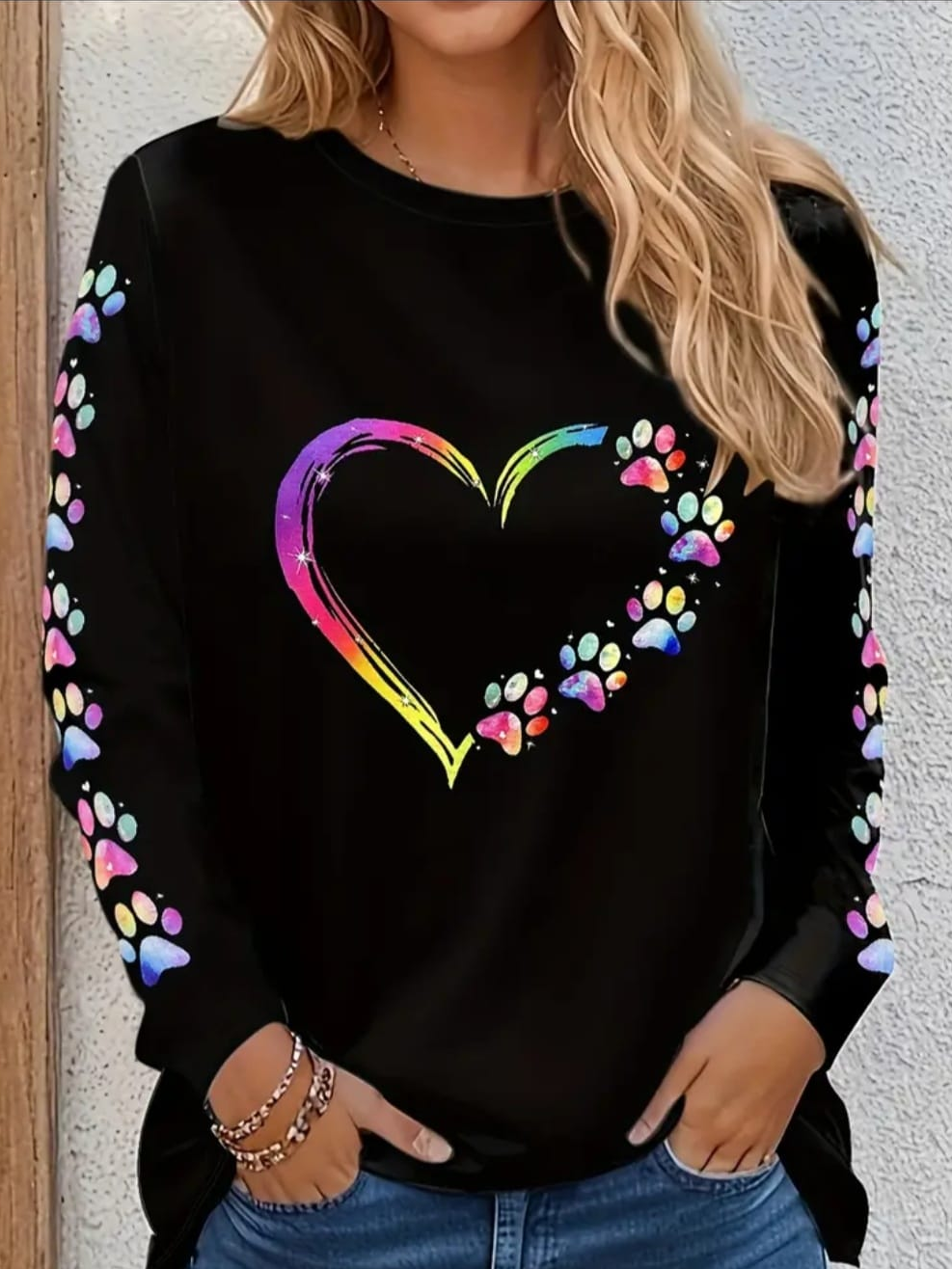 Women's Dog Paw Print Heart Valentine's Day Long Sleeve T-Shirt