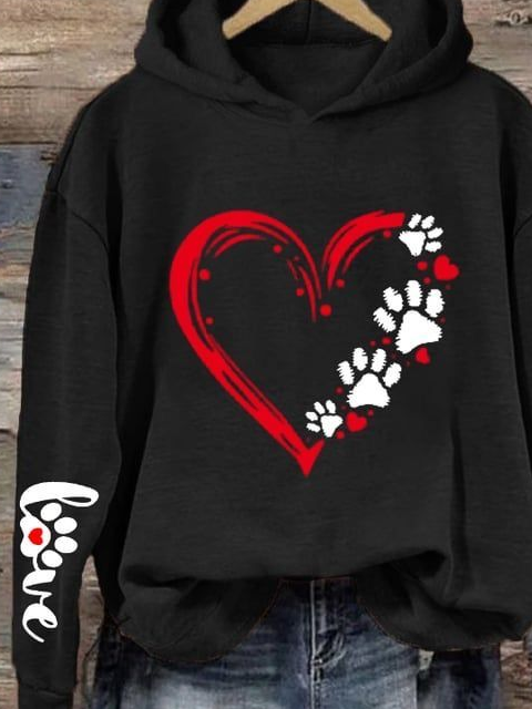 Women's Dog Paw Print Love Valentine's Day Loose Casual Hoodie