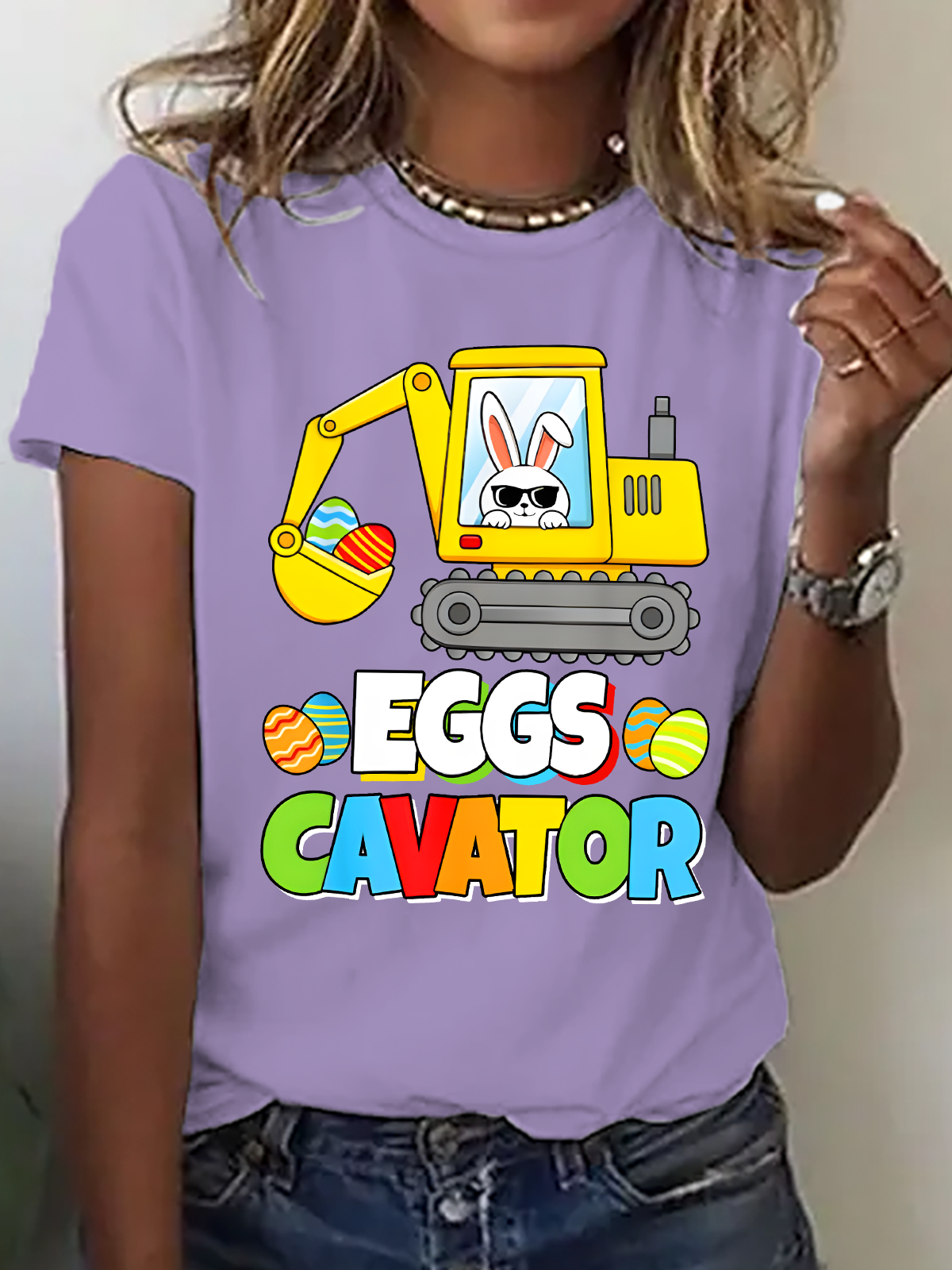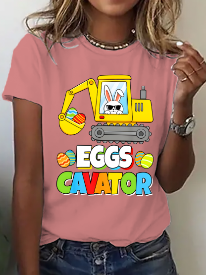 Women's Eggs Cavator Easter Bunny Excavator Funny Rabbit short-sleeved T-shirt