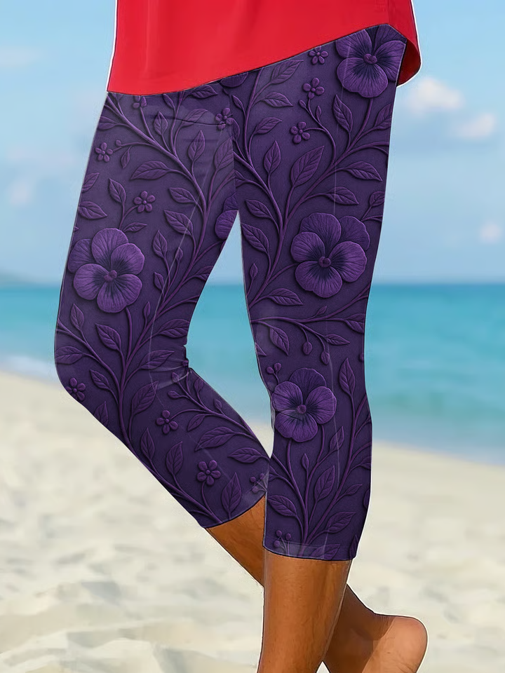 Women's Elastic Waist H-Line Legging Daily Going Out Pants Purple Casual Printing Floral Summer Pants
