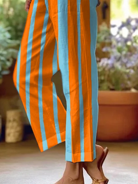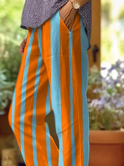 Women's H-Line Baggy Pants Daily Going Out Pants Orange Casual Printing Striped Spring/Fall Pants