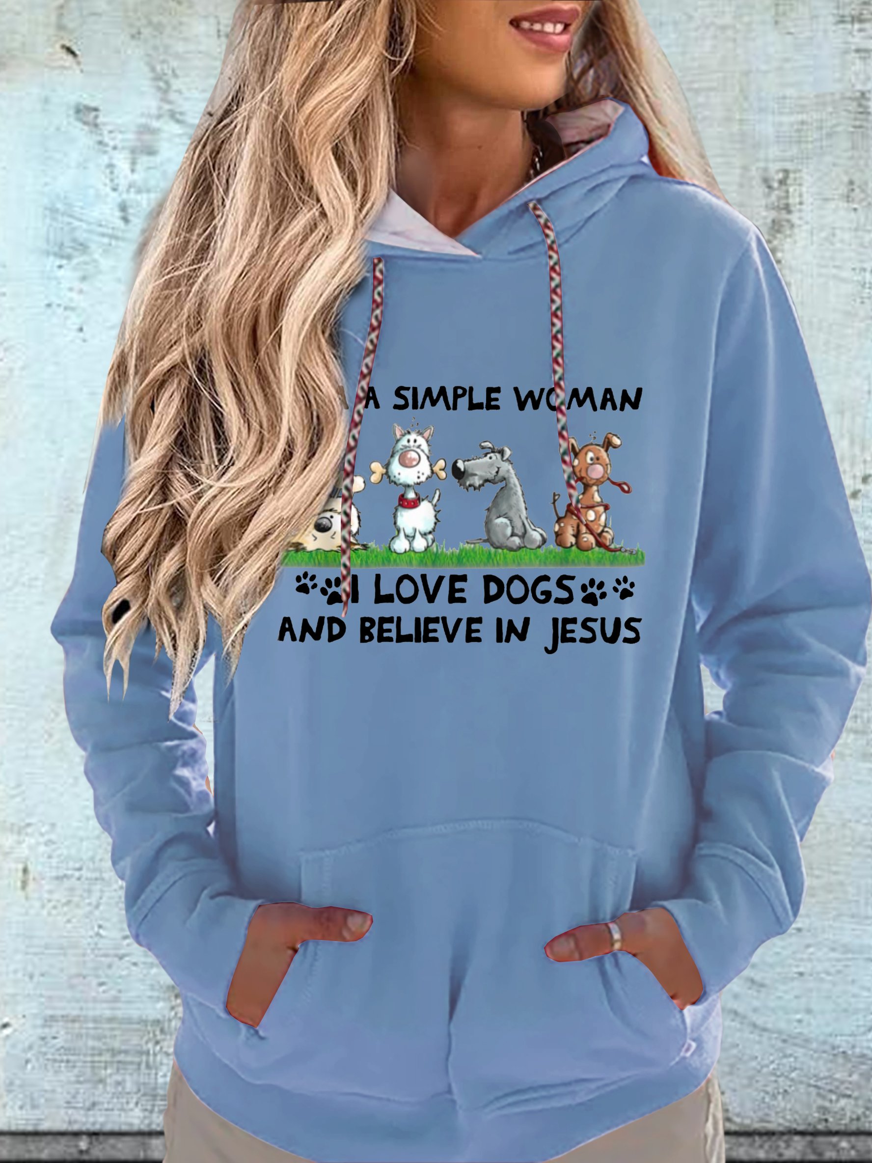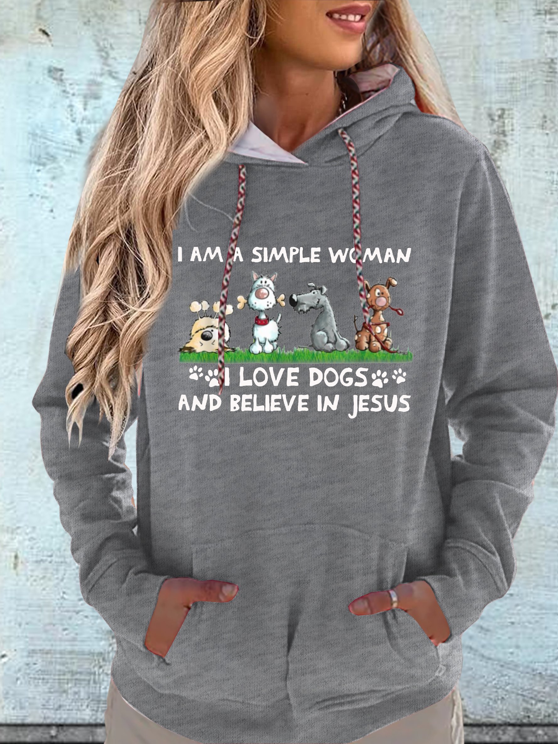 Women's I am a simple woman I love Dogs and Believe in Jesus Dog Casual Hoodie