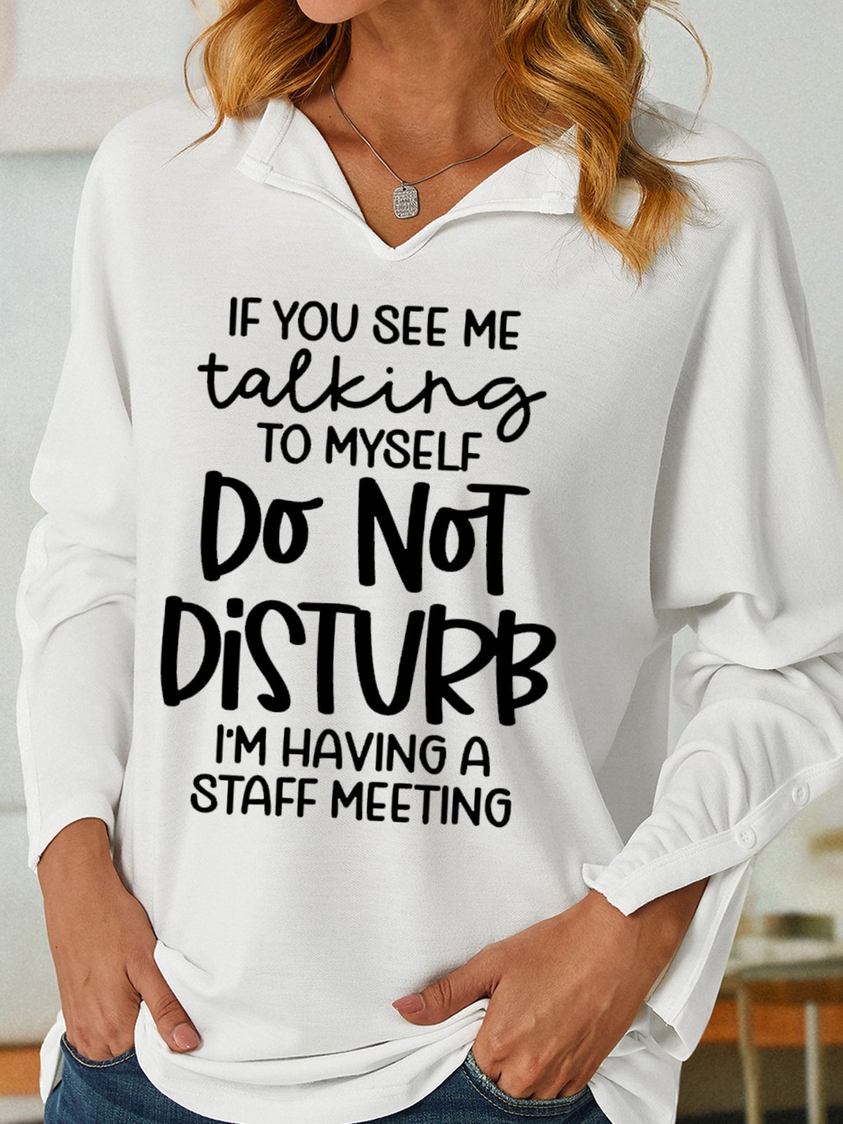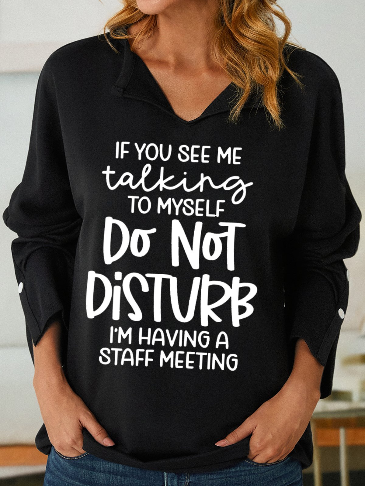 Women's I‘m Have A Staff Meeting Hilarious Shawl Collar Casual Sweatshirt