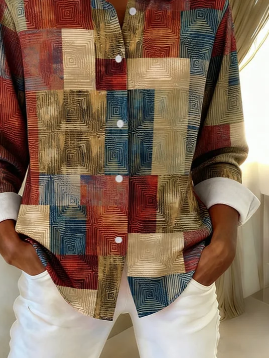 Women's Long Sleeve Shirt Spring/Fall As Picture Abstract Buckle Shirt Collar Regular Sleeve Daily Going Out Casual Top