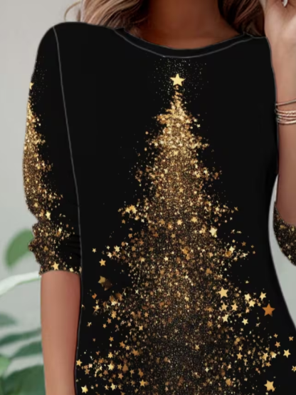 Women's Long Sleeve T-shirt Spring/Fall Black Christmas Jersey Crew Neck Daily Going Out Casual Top