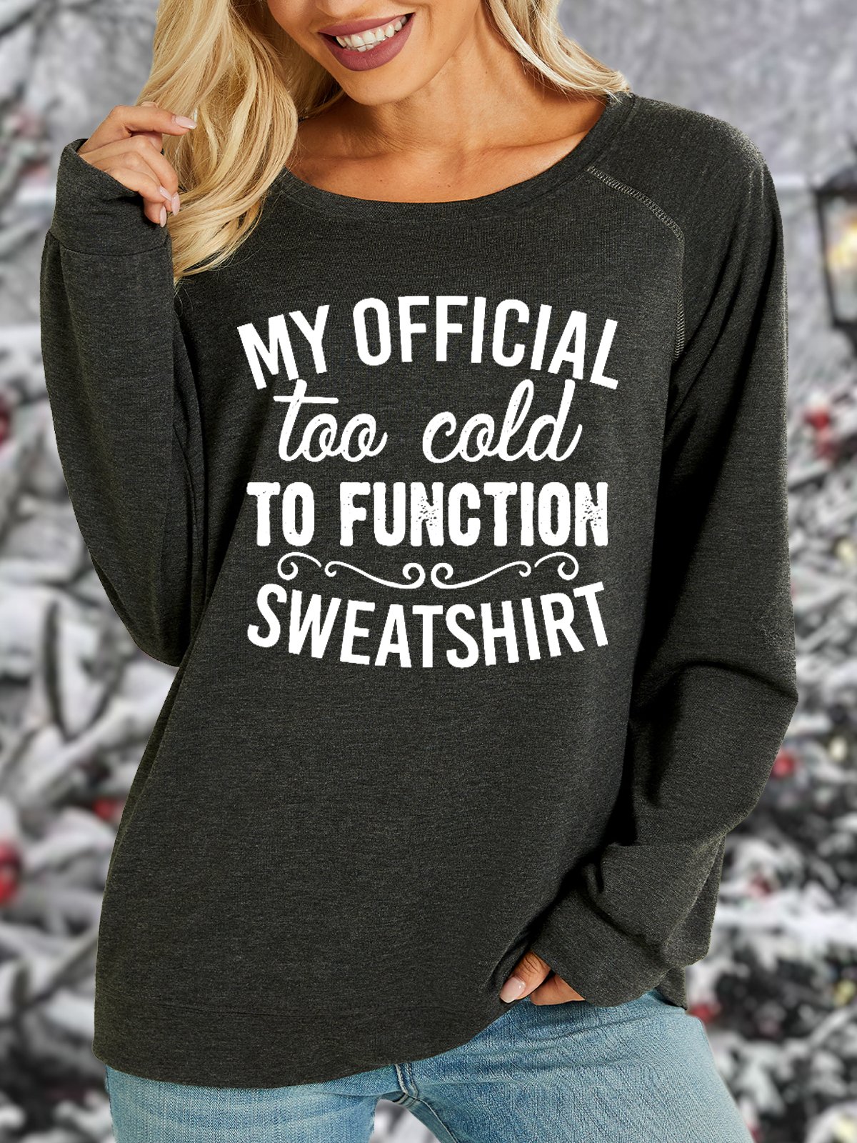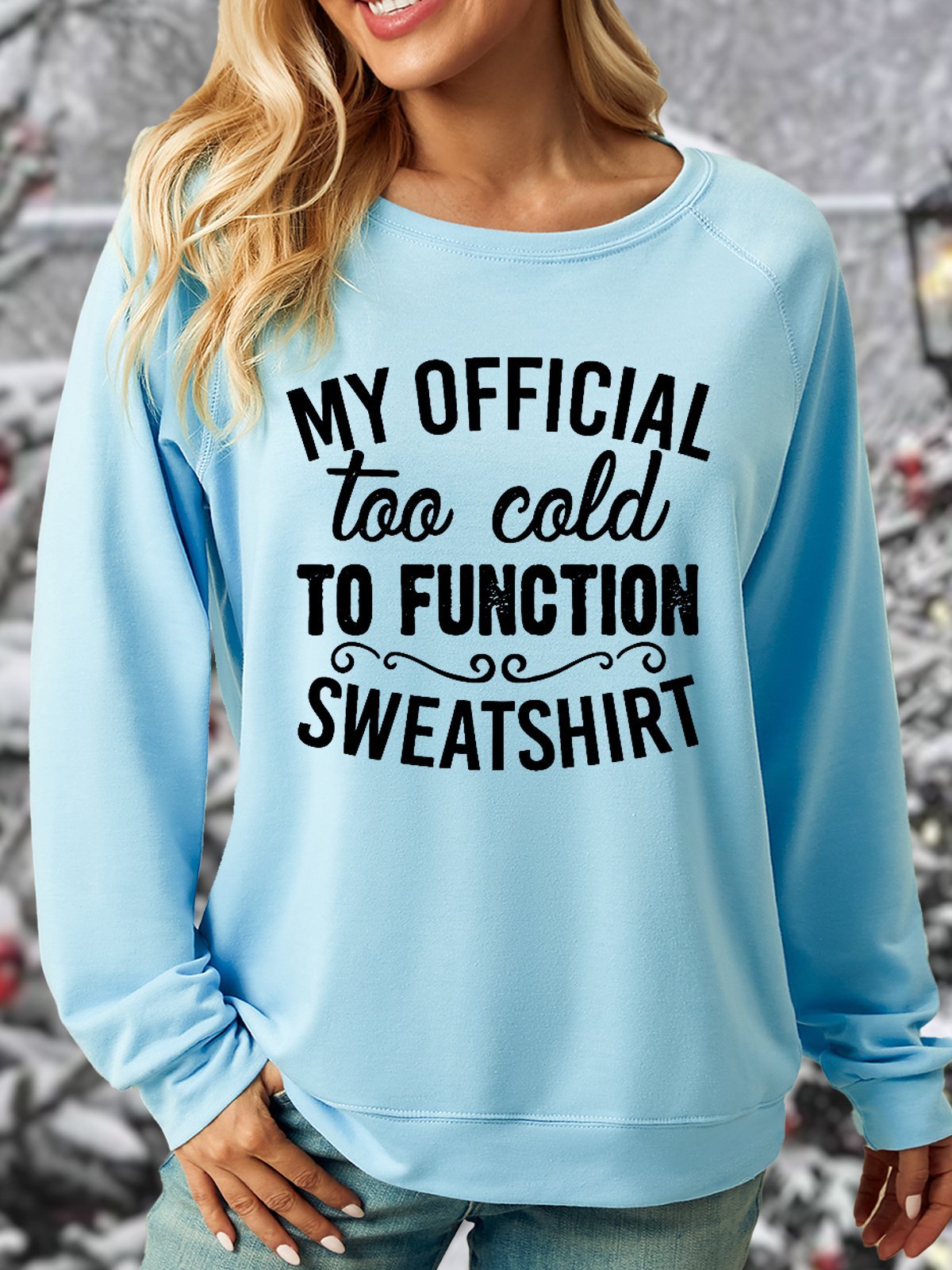 Women's My Official Too Cold To Function Funny Casual Letters Crew Neck Sweatshirt