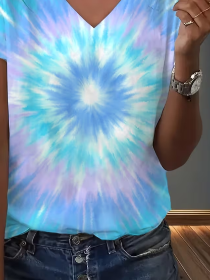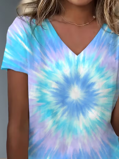 Women's Short Sleeve T-shirt Summer Blue Abstract Printing V Neck Holiday Going Out Vintage Top