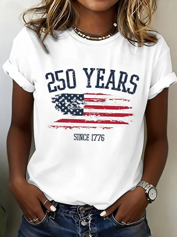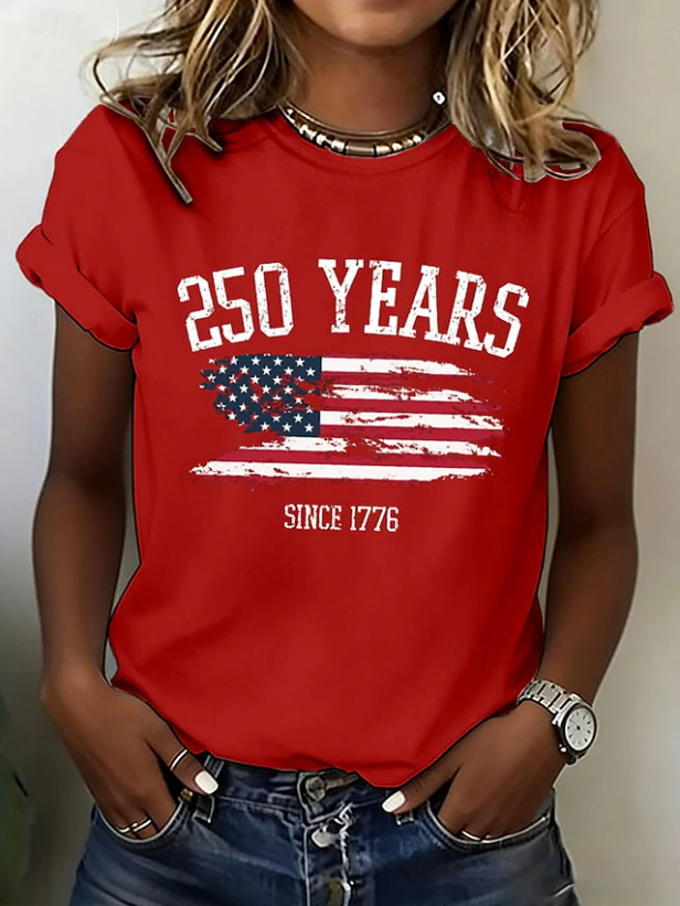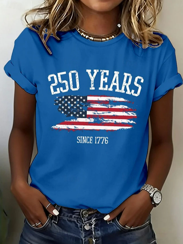 Women's Short Sleeve T-shirt Summer Blue Independence Day (Flag) Printing Jersey Crew Neck Daily Going Out Casual Top