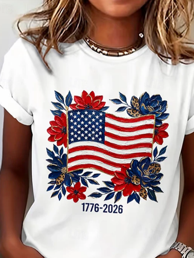 Women's Short Sleeve T-shirt Summer White Floral Printing Jersey Crew Neck Daily Going Out Casual Top