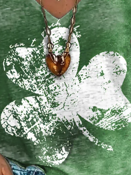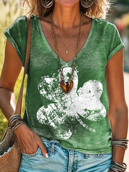 Women's St. Patrick's Day Clover Art Print V-neck T-shirt