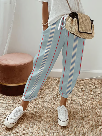 Women's Striped Design Lace-Up Elastic Waist Loose Casual Pants