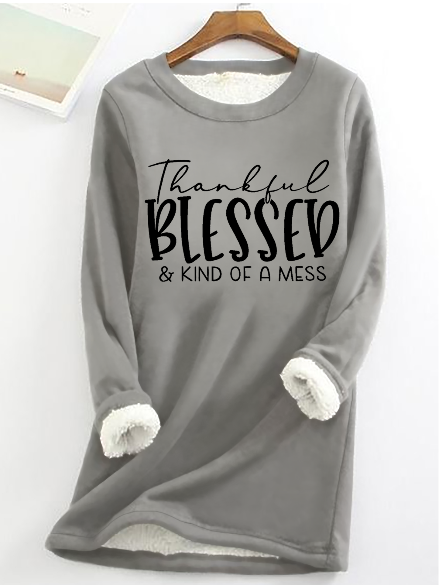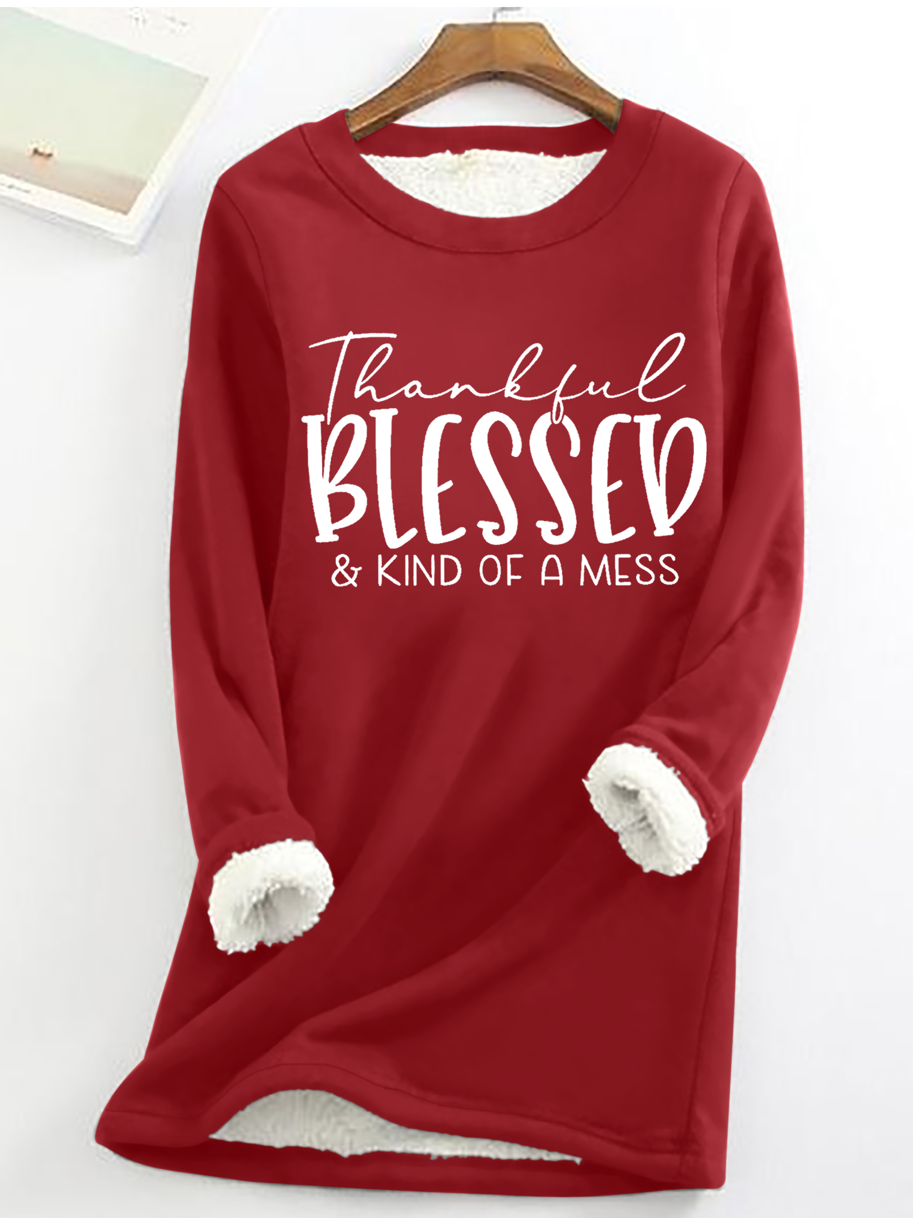 Women's Thankful Blessed & Kind of A Mess Print Fleece Sweatshirt