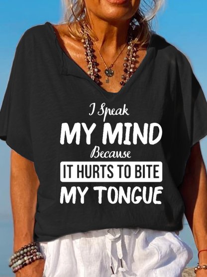 Womens Funny I Speak My Mind Because It Hurts To Bite My Tongue Casual Letter Short Sleeve T-Shirt