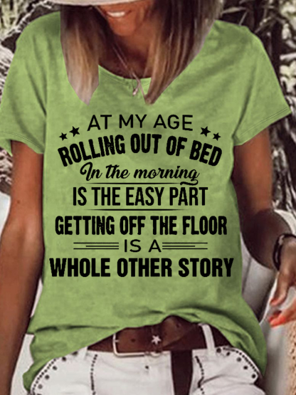 Women's Sarcasm At My Age Rolling Out Of Bed In The Morning Is The Easy Part Getting Off The Floor Is A Whole Other Story Casual T-Shirt