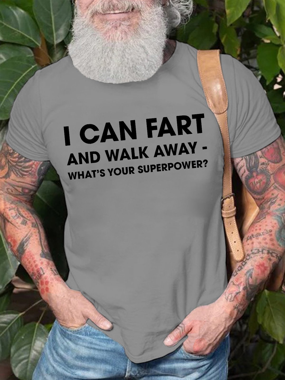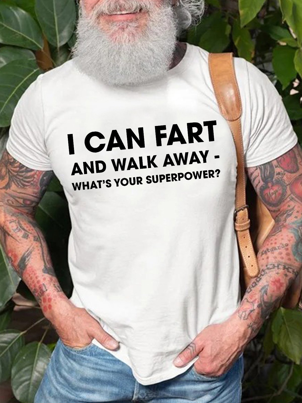 Mens I Can Fart And Walk Away Funny Graphics Printed Cotton Casual Text Letters T-Shirt