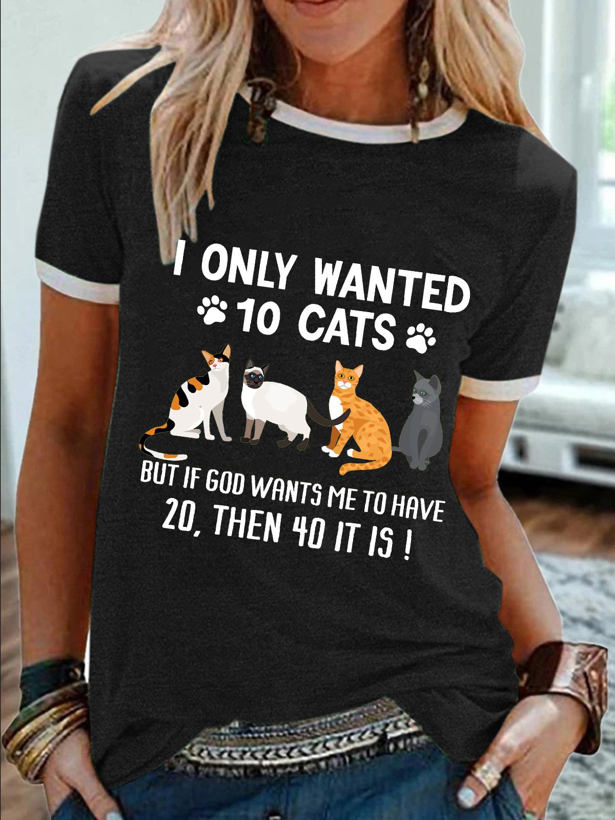 Women’s I Only Wanted 10 Cats But If God Wants Me To Have 20,Then 40 It Is Regular Fit Casual Text Letters T-Shirt