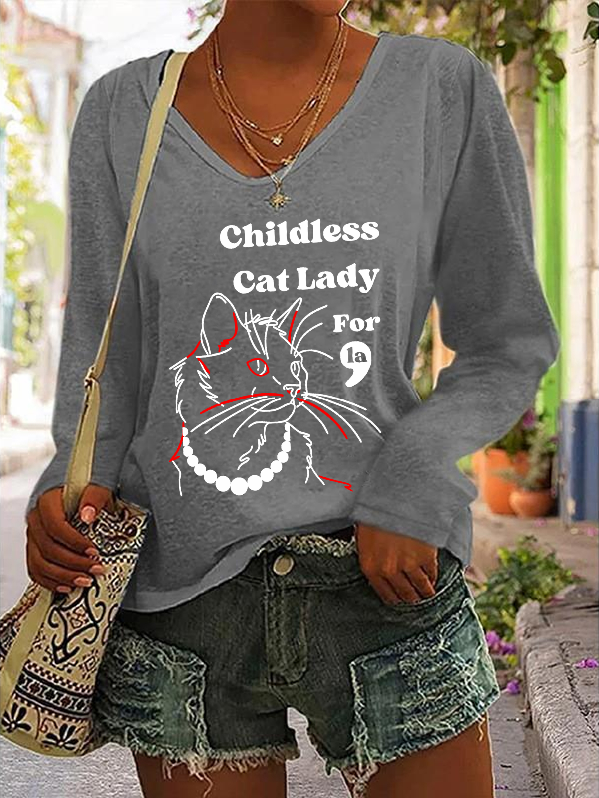 Childless Cat Lady Casual V-Neck Long Sleeve Shirt