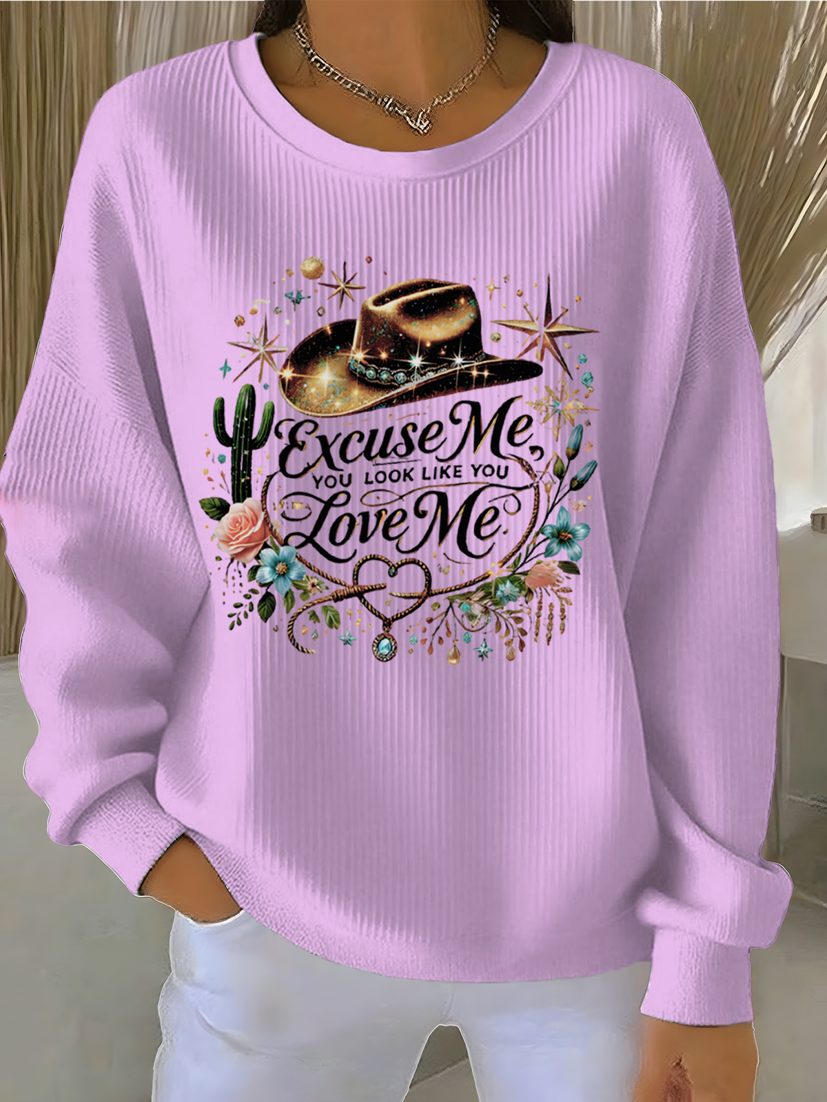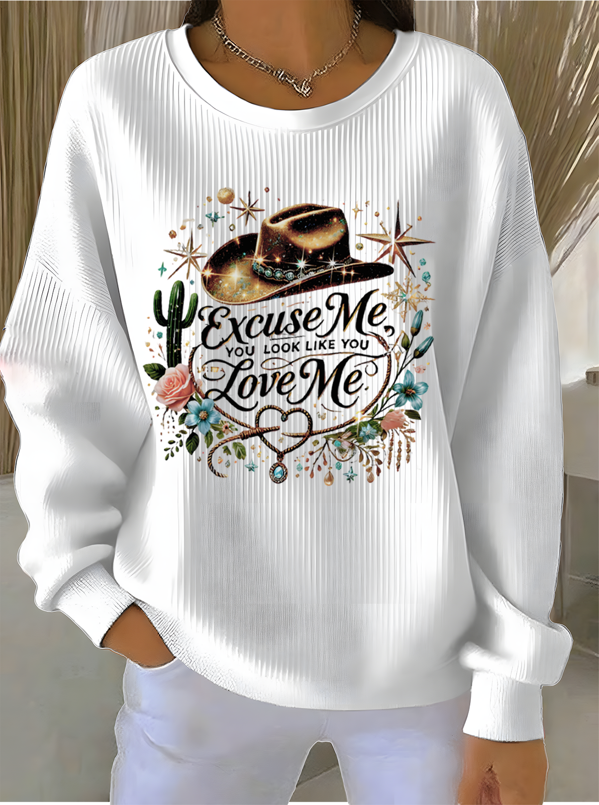 Cotton-Blend Letter Pattern Simple Sweatshirt