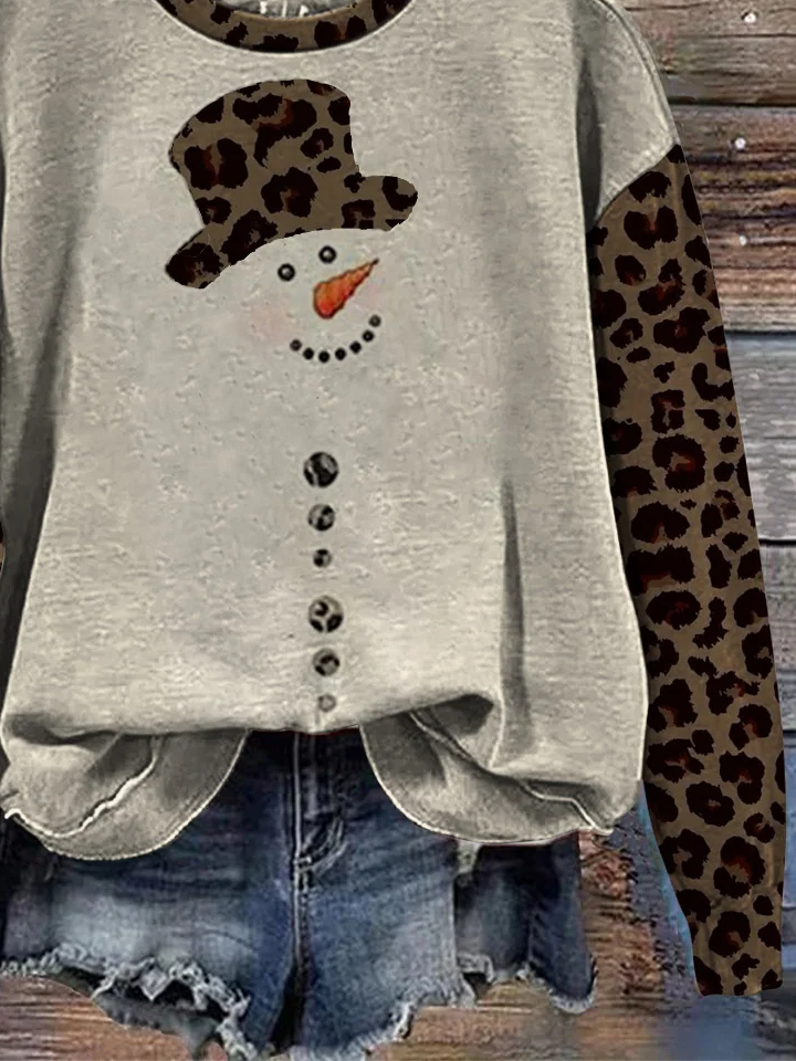 Crew Neck Casual Christmas Snowman Loose Sweatshirt