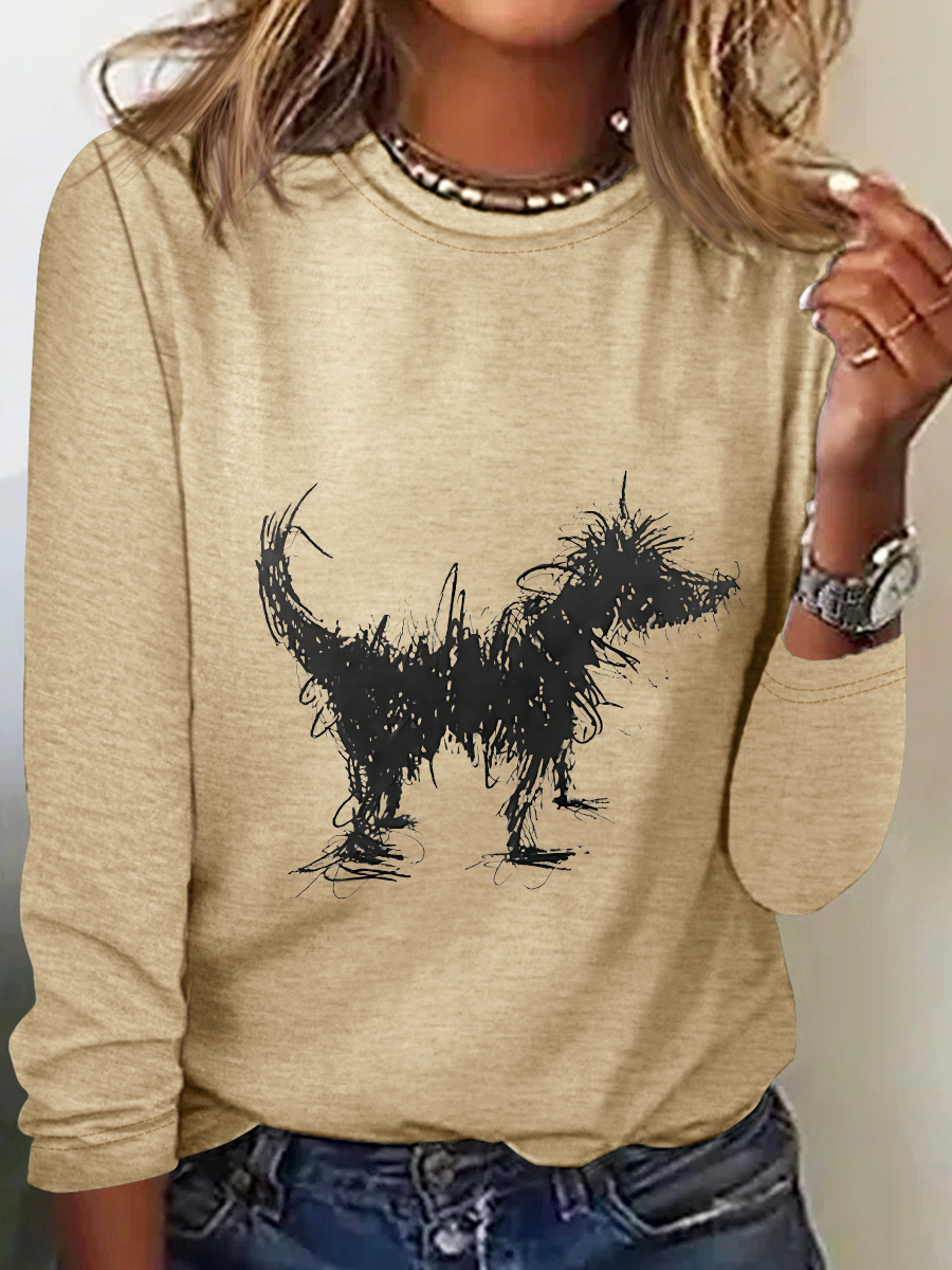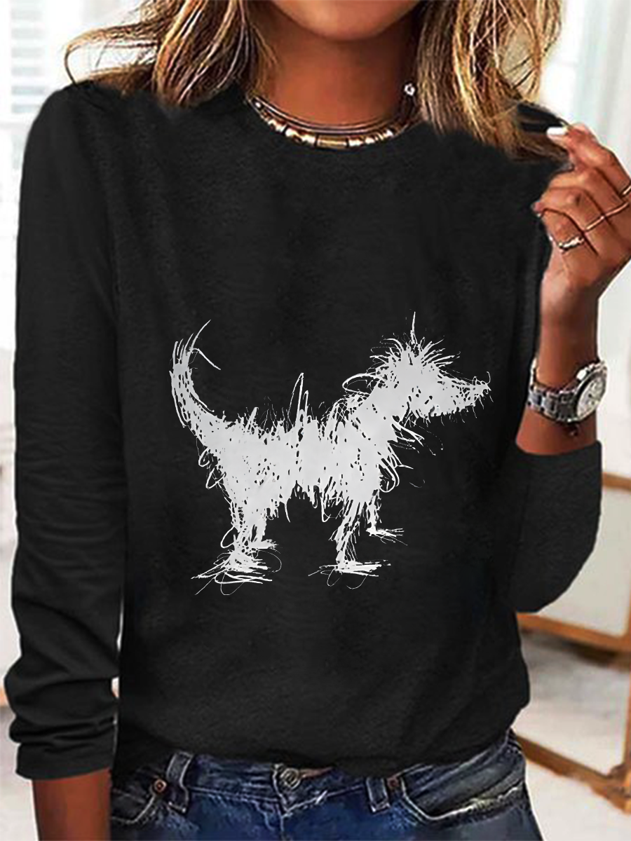 Fun Furry Puppy Art Casual Long Sleeve Shirt