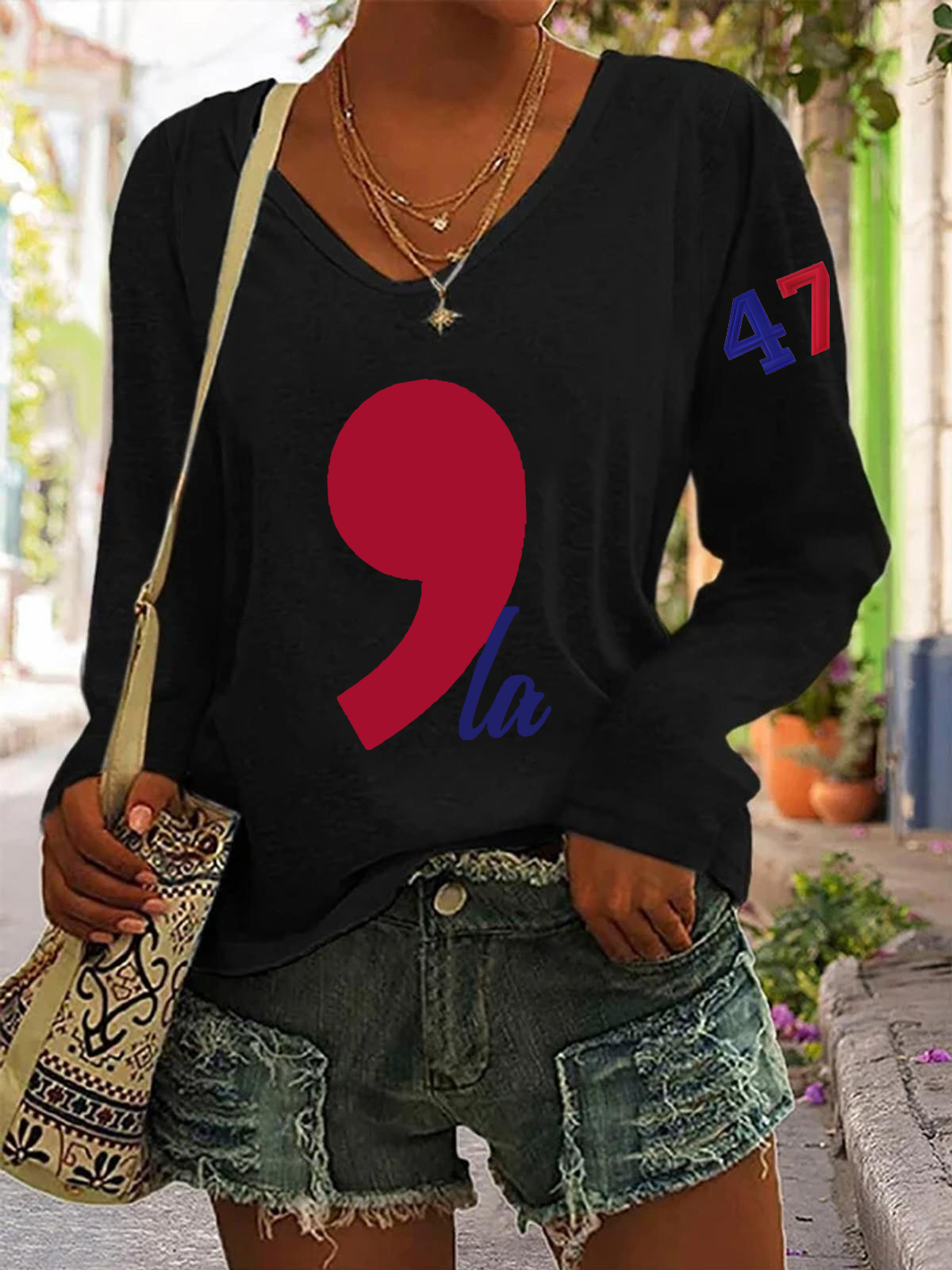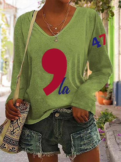 La 47 Print Casual V-Neck Long Sleeve Shirt
