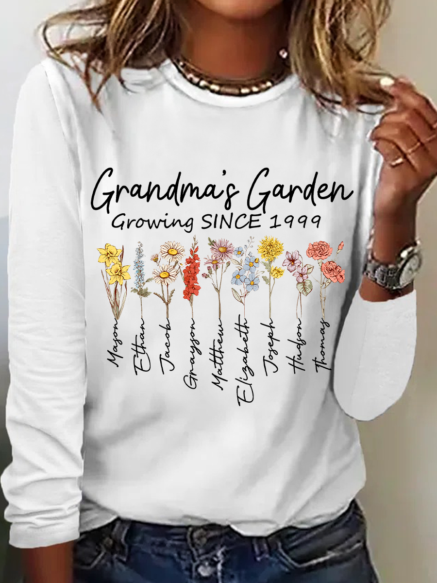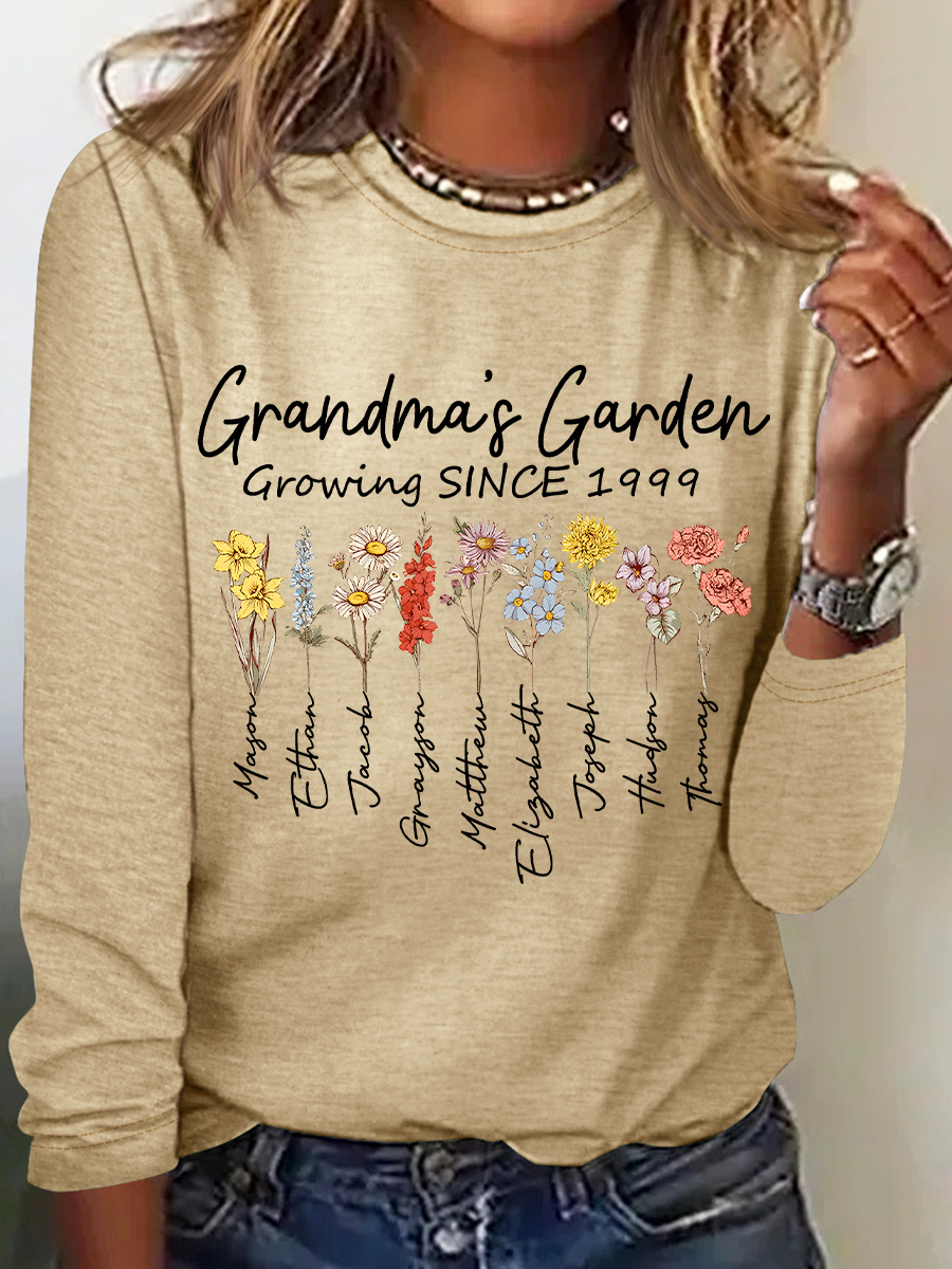 Personalized Grandma's Garden Casual Long Sleeve Shirt