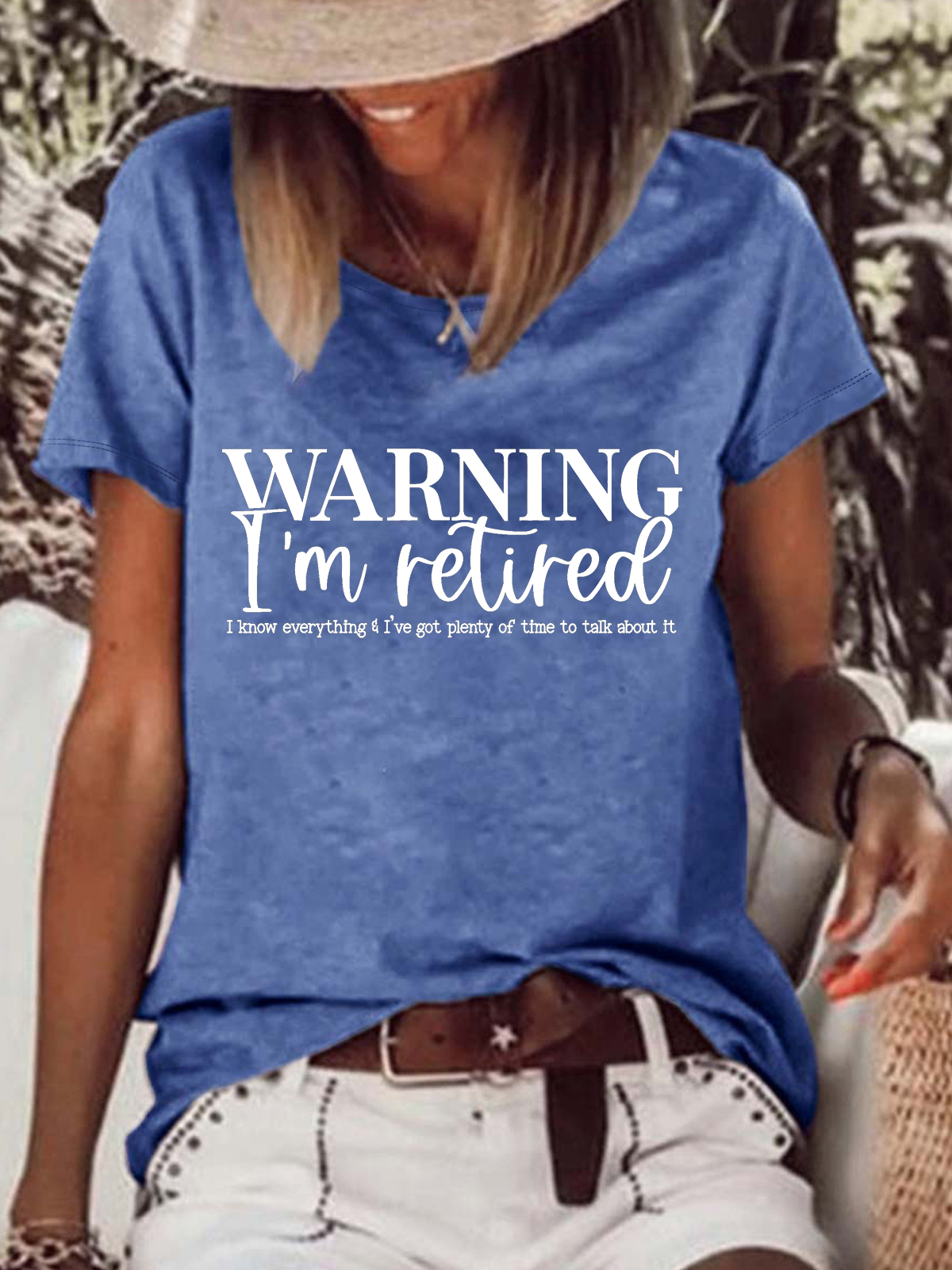 Women's Funny Word Warning I'm Retired I know Everything Casual Text Letters Loose T-Shirt