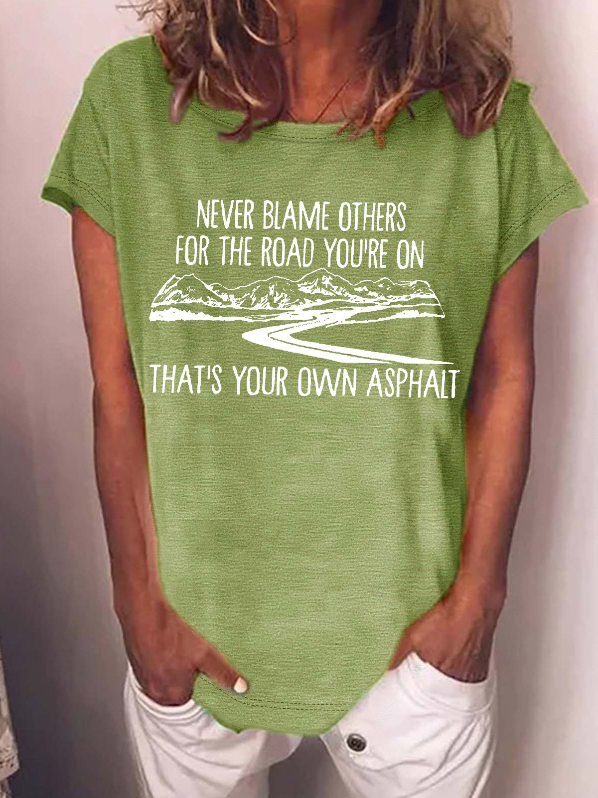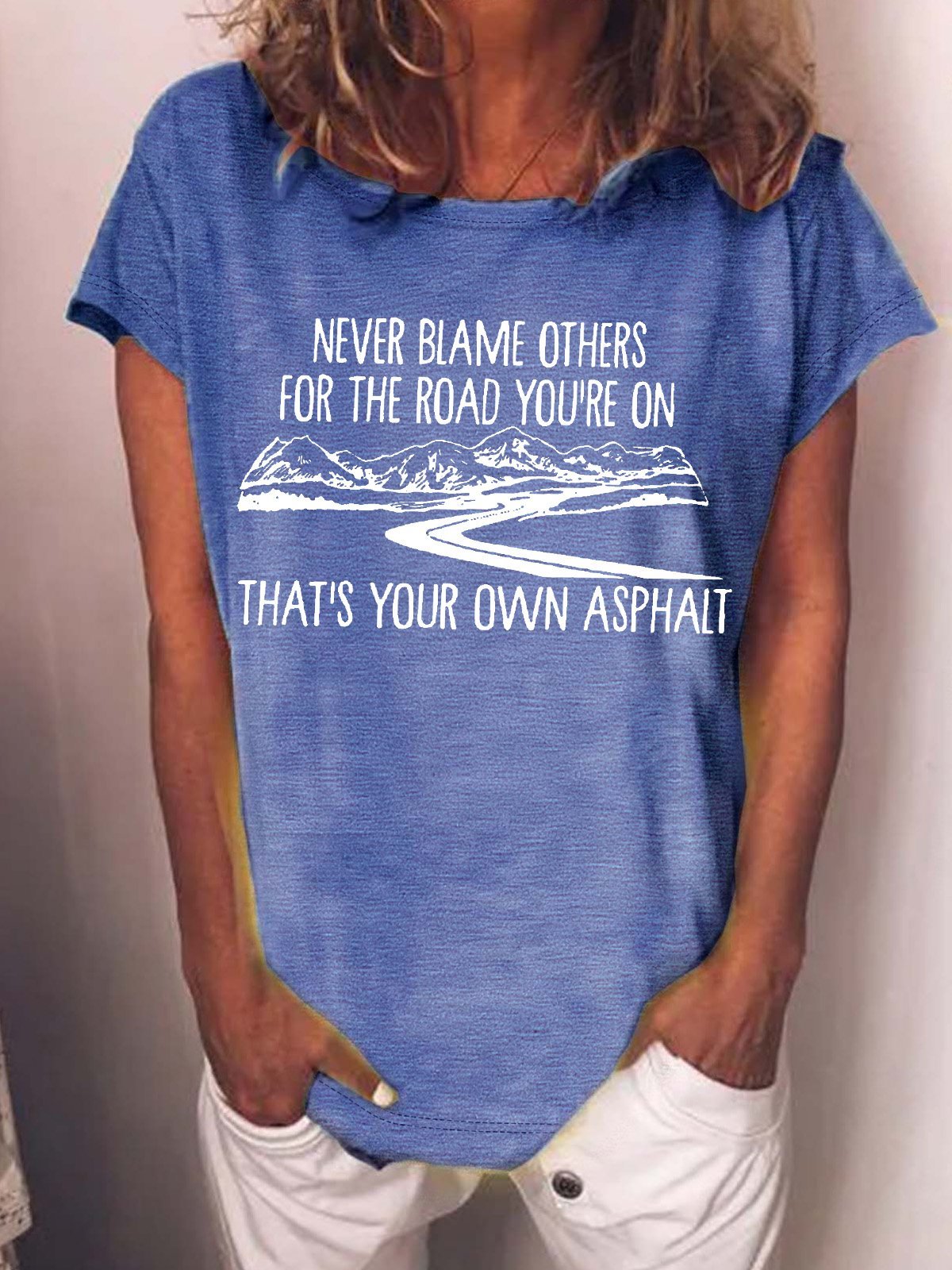 Women’s Never Blame Others For The Road You’re On That’s Your Own Asphalt Crew Neck Casual T-Shirt