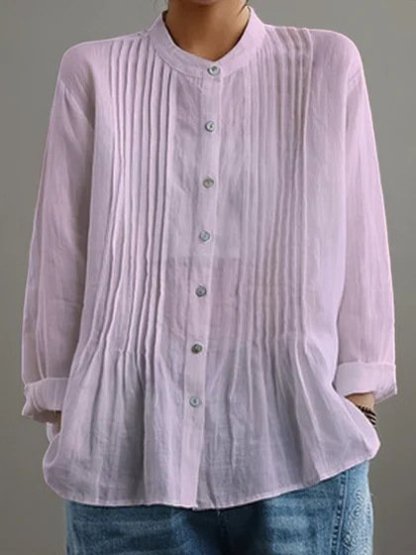 Women's Casual Cotton And Linen Pleated Shirt