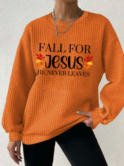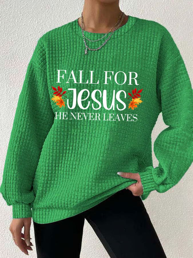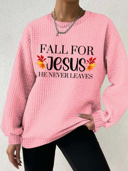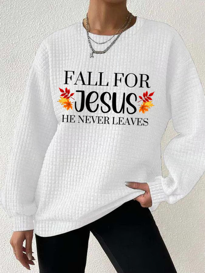 Women's Fall For Jesus He Never Leaves Print Sweatshirt